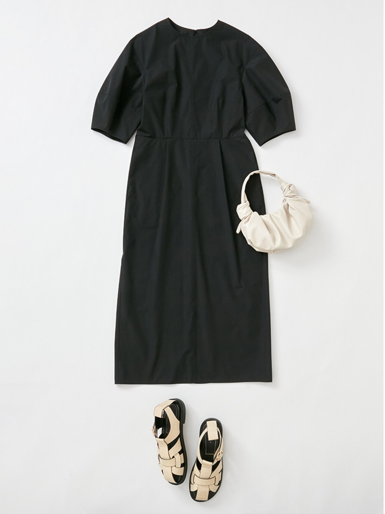 『きれいめワンピースもモノトーンなら気負わず着られる』