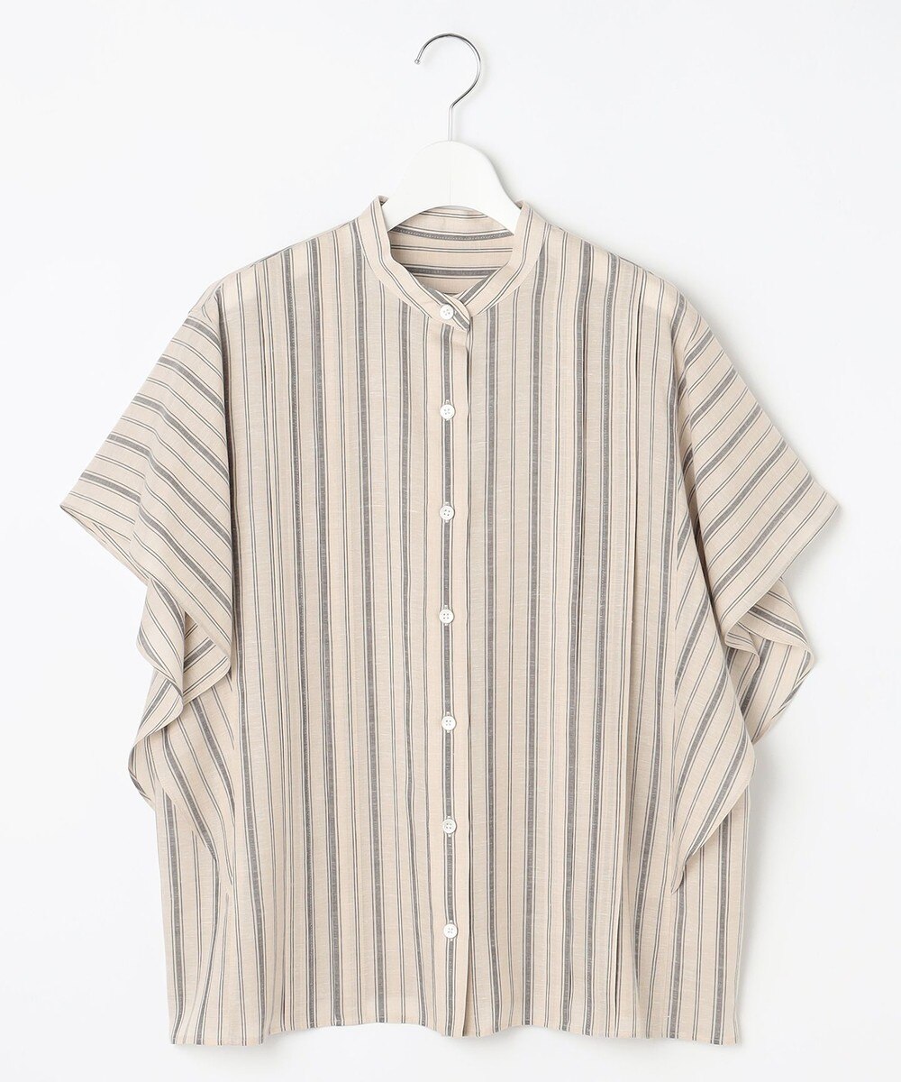 【洗える】STOCK / オーガニックコットン半袖ギャザートップス/BEIGE,