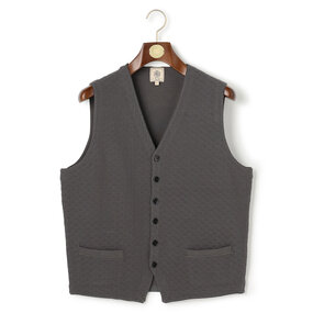 ストライプシャツと合わせることで、清潔感とこなれ感のあるスタイリングに。着脱しやすく、室内外で調節が効く点も魅力。