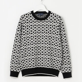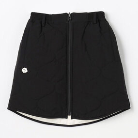 モノグラム柄のニットが個性を演出するため、他のアイテムをシンプルなものにまとめて高級感ある大人の雰囲気に。防寒性に優れたスカートはリバーシブル仕様だからスタイリングに応じて変化を楽しんで。