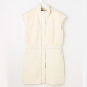 異素材のキルティングとファーを贅沢に組み合わせた、温かみのあるスタイリング。肩や腰回りがしっかり温かく、動きやすさも確保しながら女性らしいシルエットをキープするワンピース。インナーアイテムを変えるだけで様々な着こなしを楽しめる万能な一着。レギンスとレッグウォーマーの重ね付けで足元までしっかり防寒。冬の厳しい寒さも忘れさせる、機能性とファッション性を兼ね備えた洗練のスタイリング。