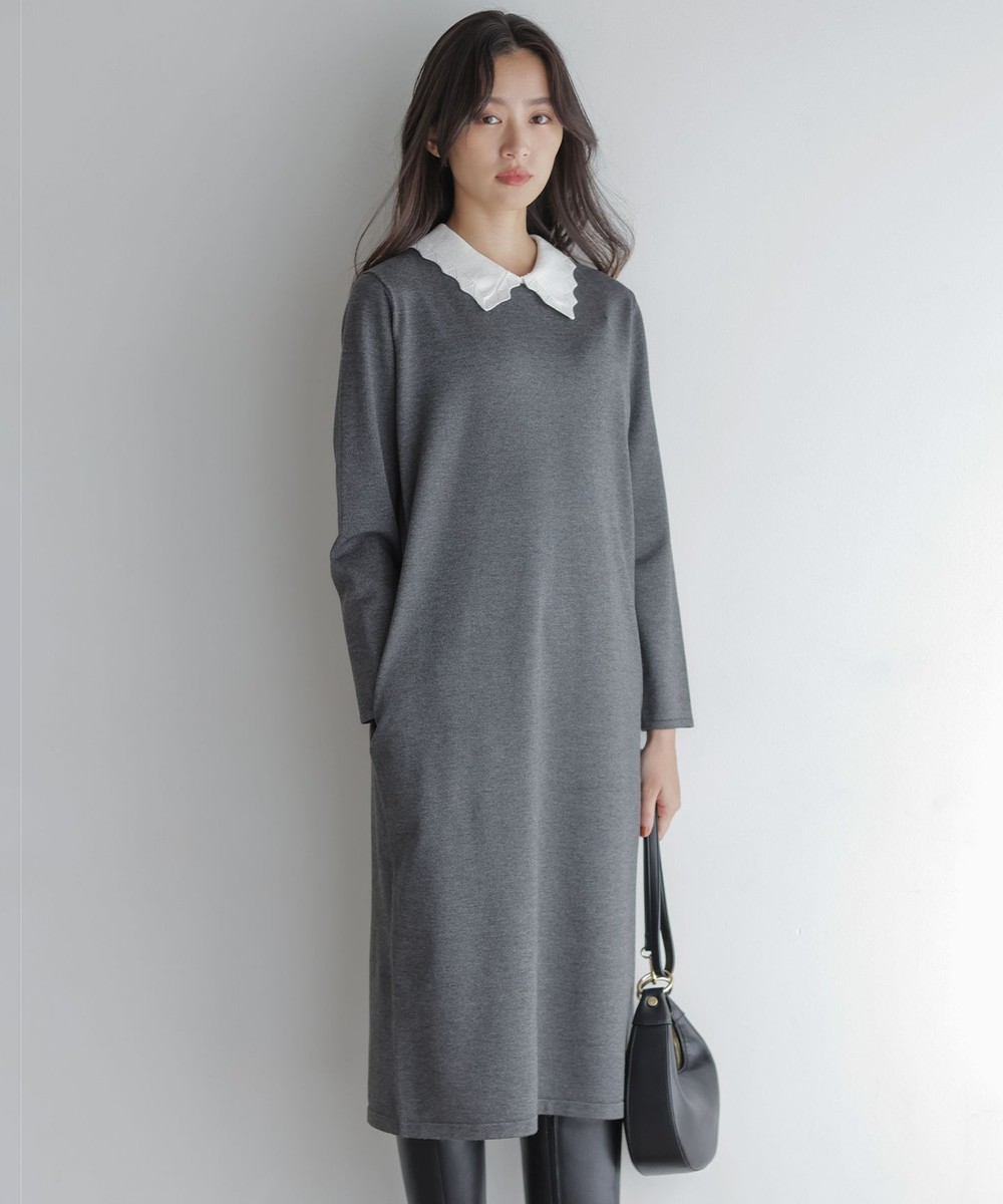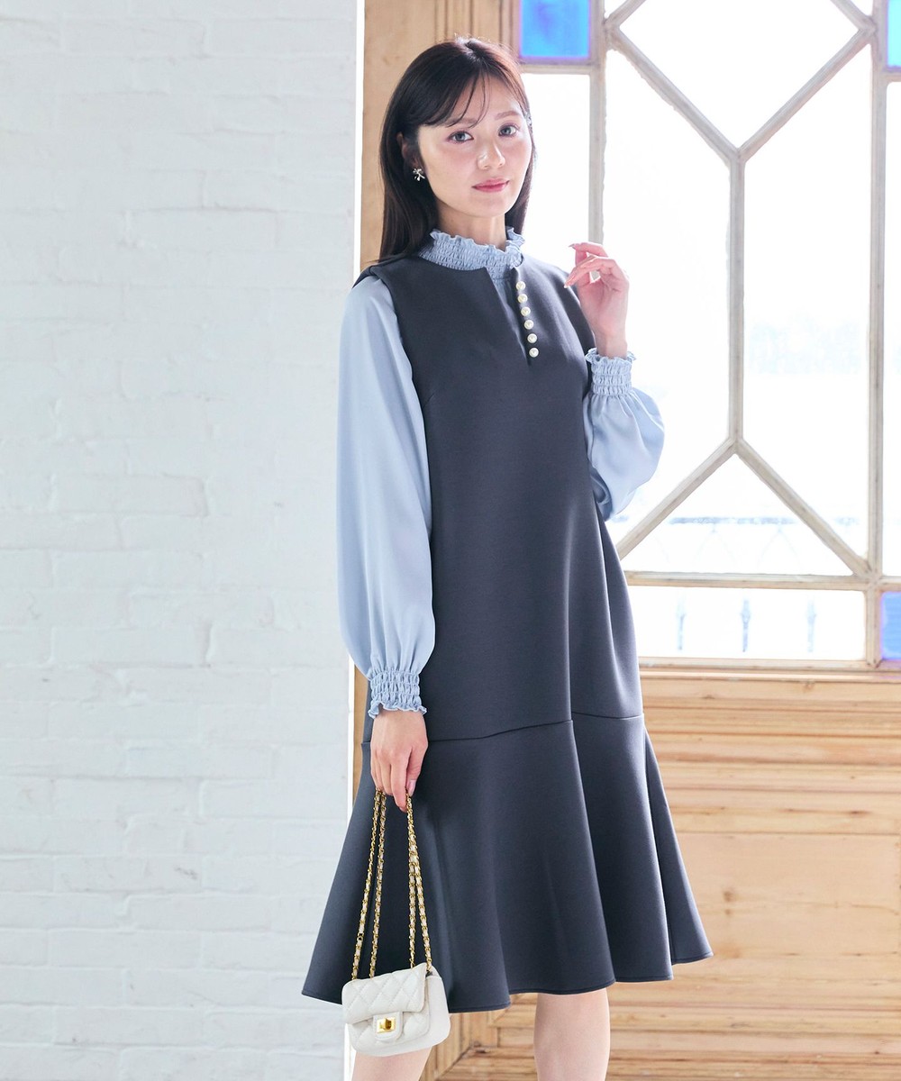 【カタログ掲載】ウールミラノ異素材 ワンピース/自由区