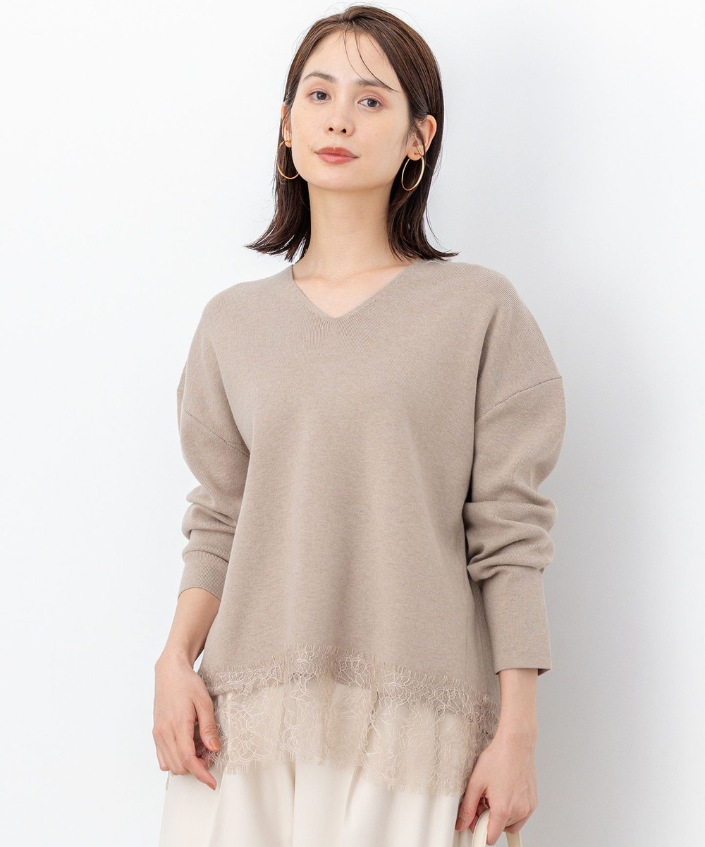 【洗える】エンブロイダリー フラワーレースコンビ ニット/23区