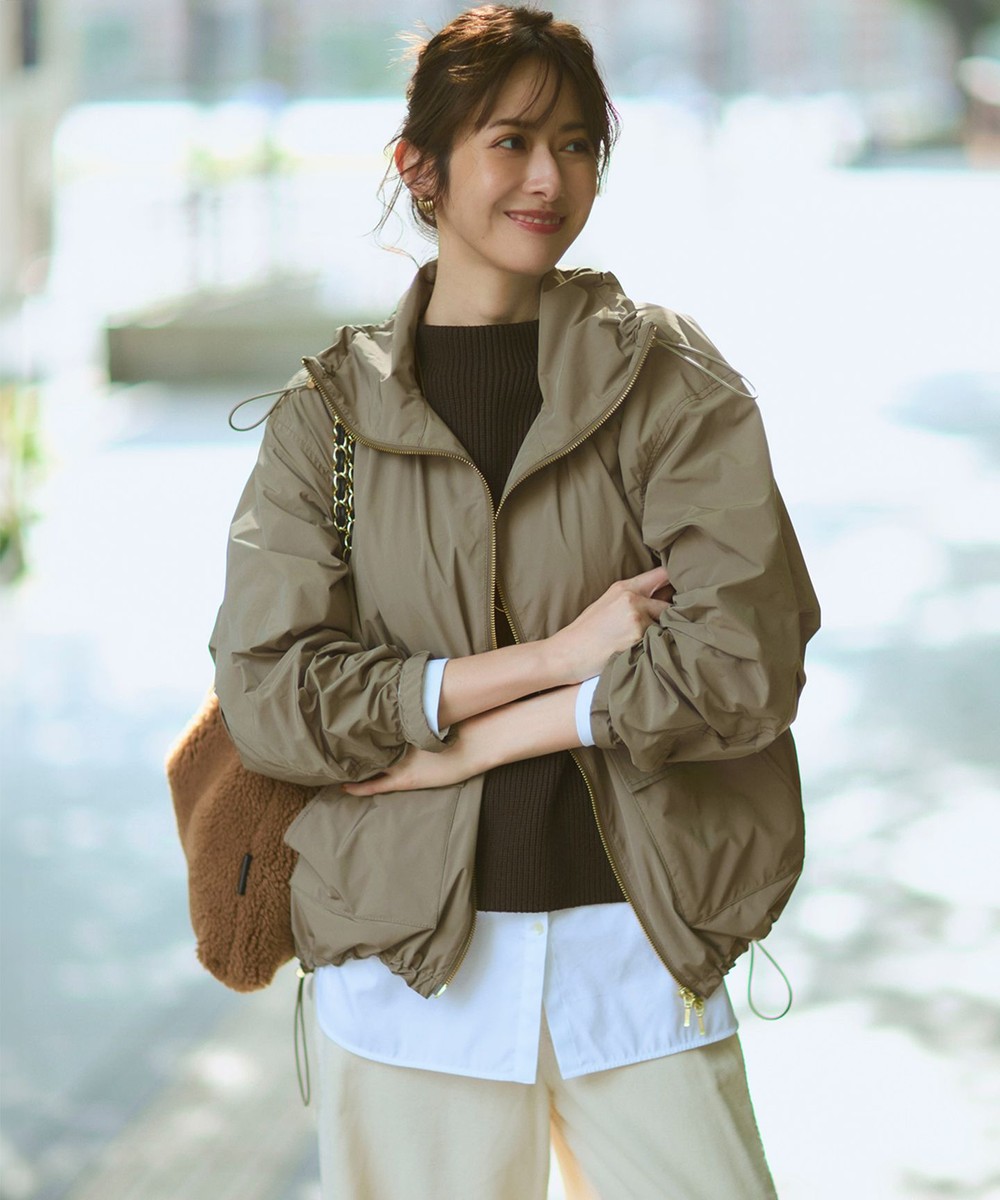 【撥水加工】ソフトメモリータフタ スタンドネック ブルゾン/23区