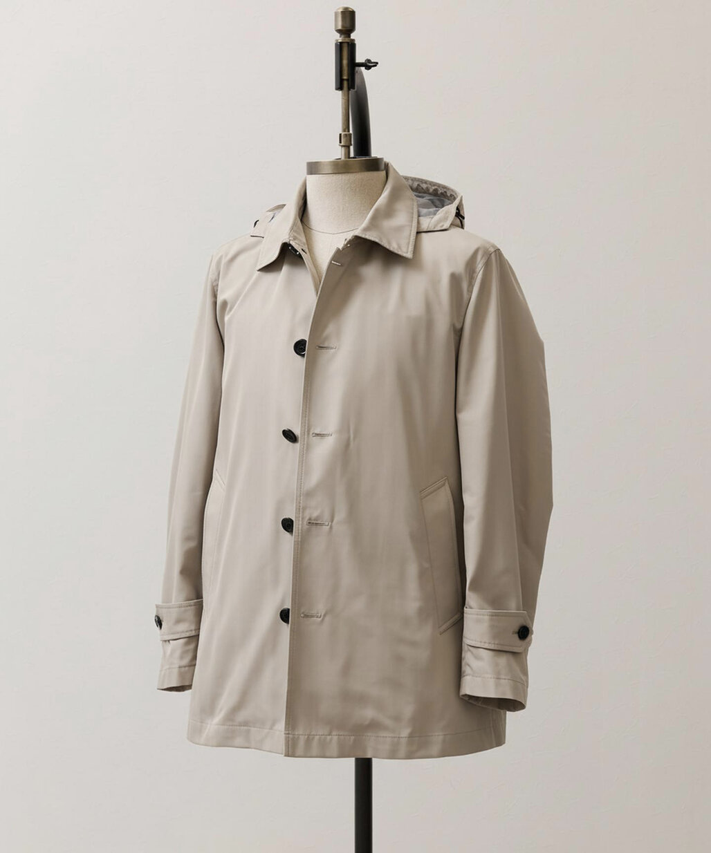 また、フードはスナップボタンで簡単に着脱ができ、一着で表情を変えられるスプリングコートならではの汎用性の高さが魅力です。