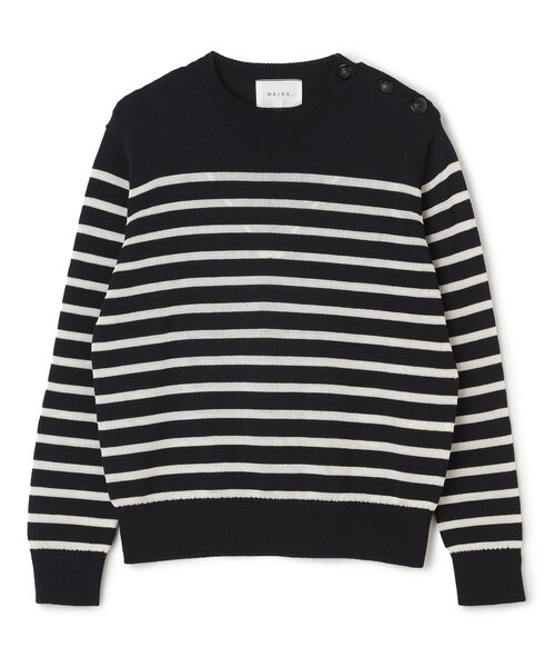 HELIODOR / レーヨンボーダーマリンボタンニット/BEIGE,
