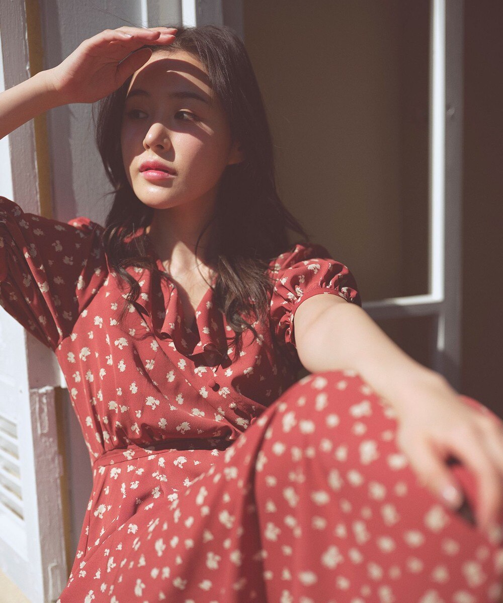 カシュクールデザイン 小花プリントワンピース/Feroux