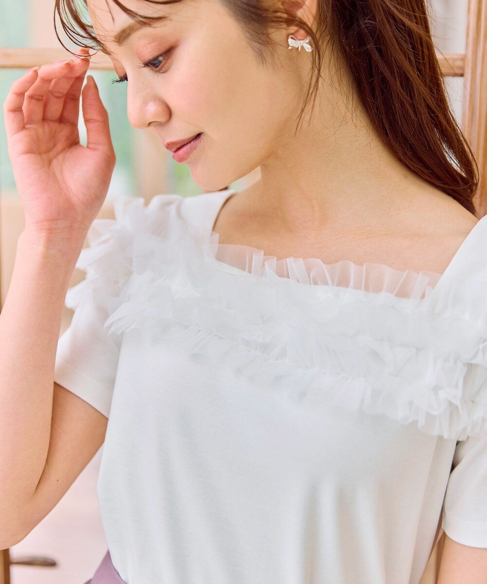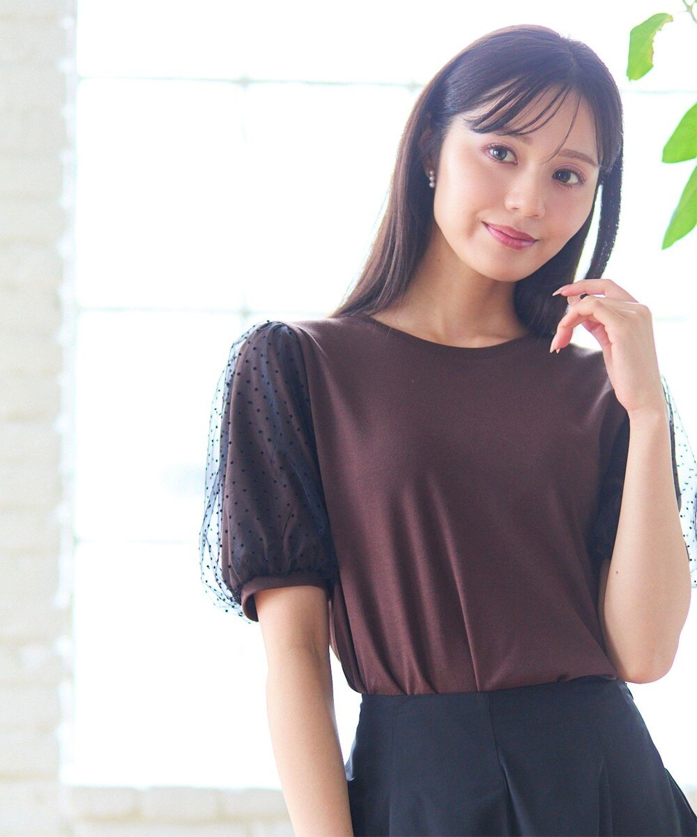 【汗ジミが目立たない・洗える】チュール袖パフスリーブ Tシャツ/Feroux