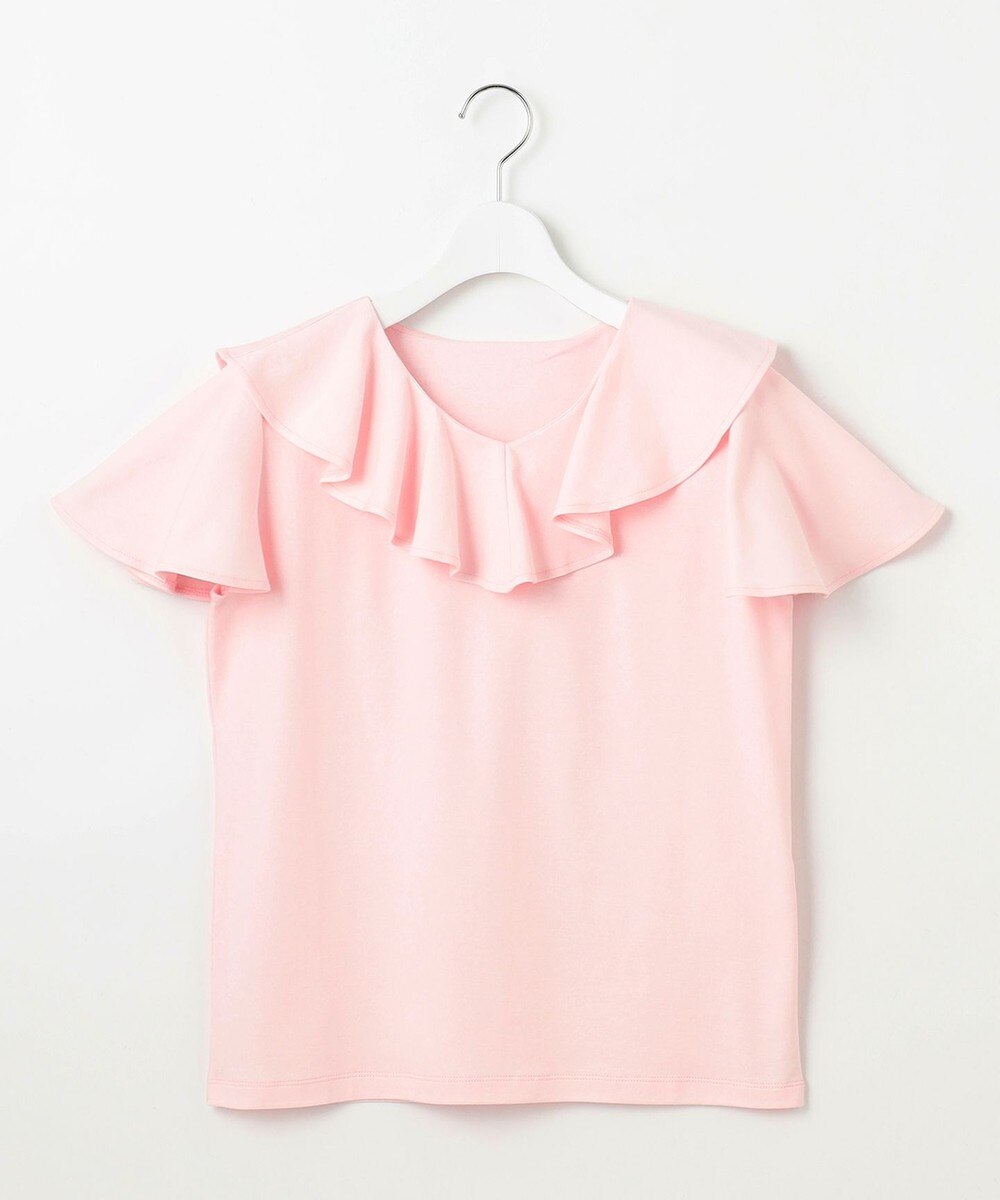 【洗える・汗ジミが目立たない】ラッフル襟Tシャツ/Feroux