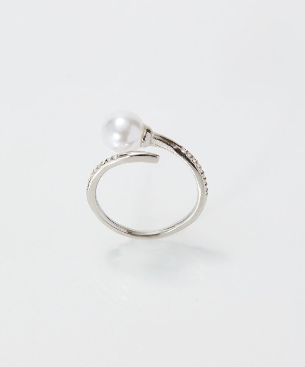 【金属アレルギー対応】ドローラップパールビジューリング シルバー/Phoebe