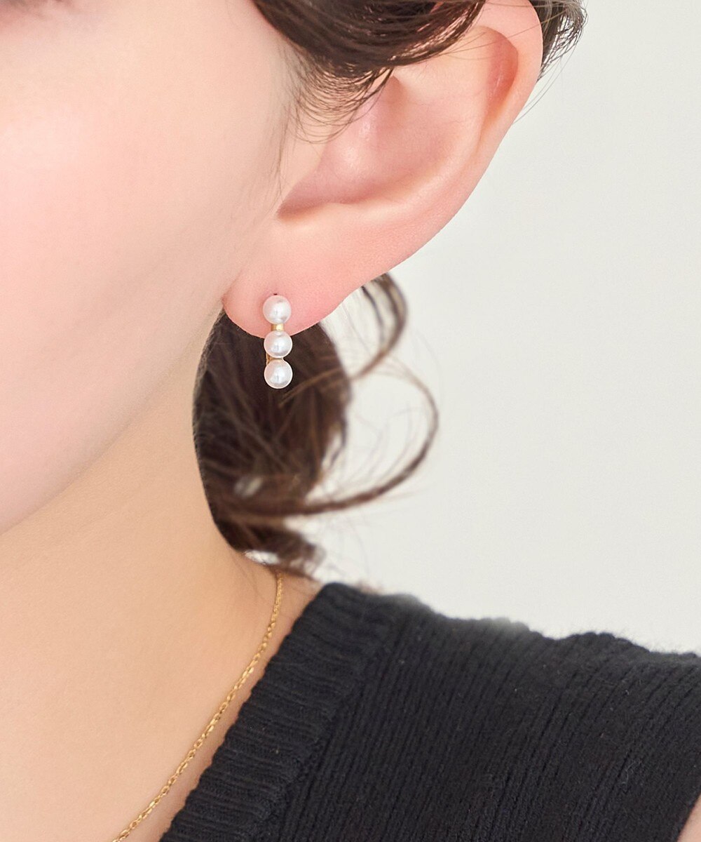 【金属アレルギー対応】ワンタッチフープスリーパールピアス/Phoebe