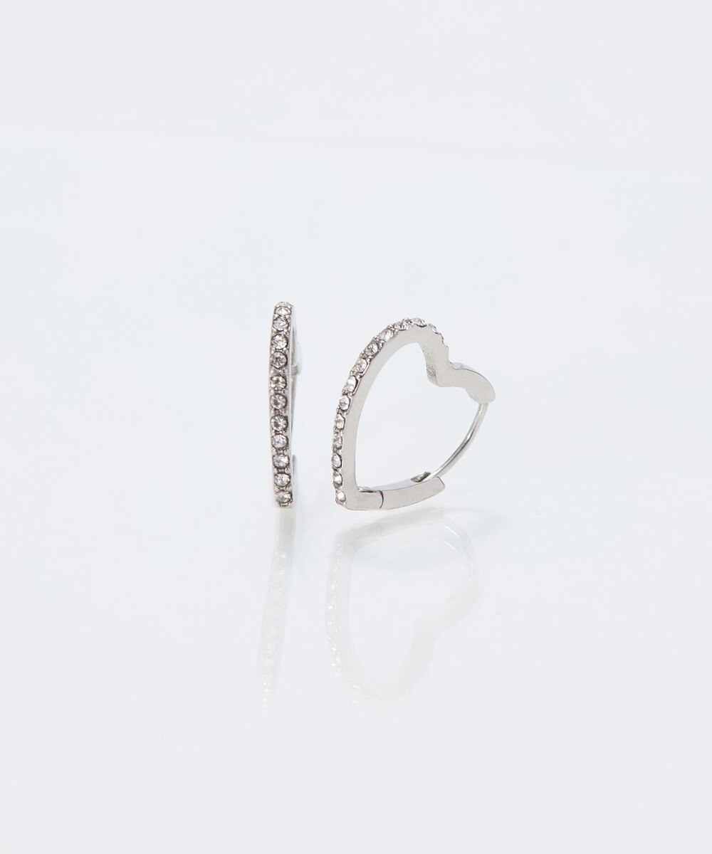【金属アレルギー対応】ワンタッチライナーハートビジューフープピアス シルバー/Phoebe