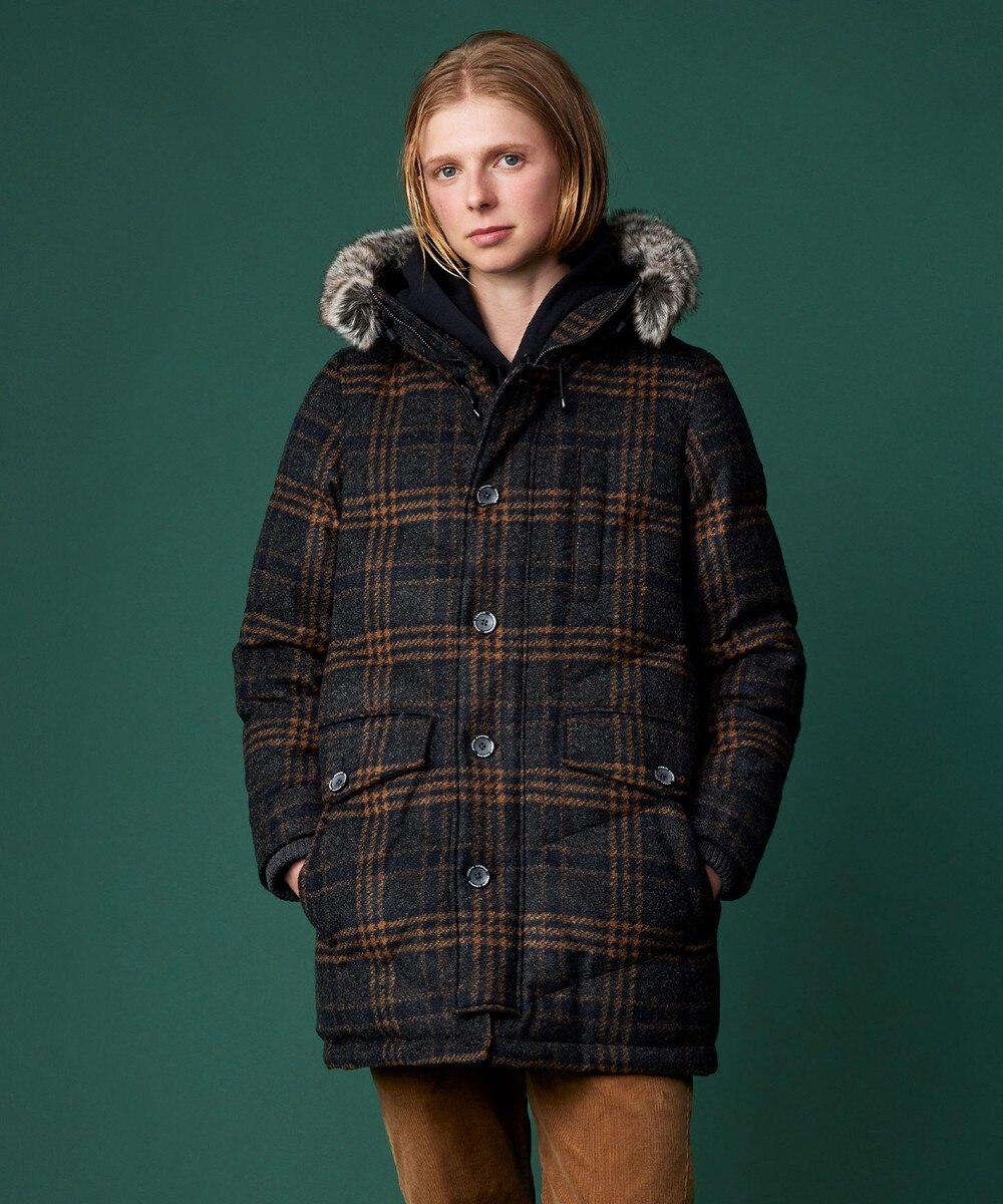 【イタリア素材/ECOファー/9ポケット/ダウン】スライバーチェックダウン コート/JOSEPH ABBOUD MOUNTAIN