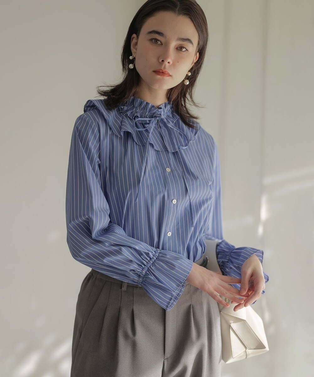 【2WAY】エアリーシャーティングフリル襟 ブラウス/組曲