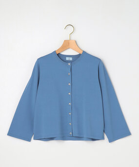きらりと光るビジュー釦がフェミニンポイントのスキッパーニット。ブルーのワントーンで春らしく爽やかに。
