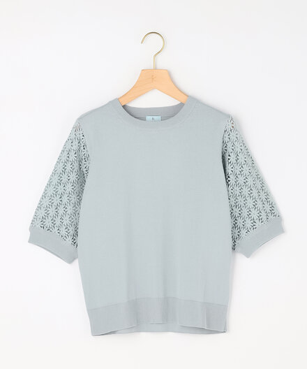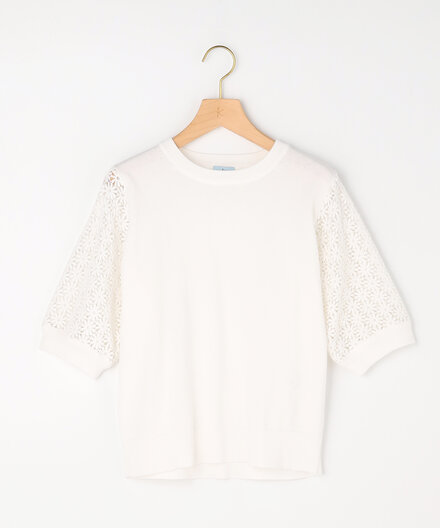 オリジナルレースをあしらった大人フェミニンなプルオーバーニット。