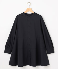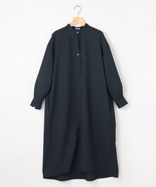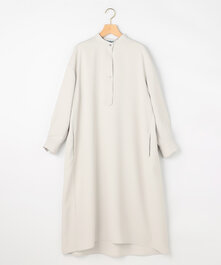 体のラインを拾わないシルエットながら、程よいコクーン感が女性らしいワンピース。バサッと羽織れるオーバーシルエットのカーディガンを合わせればクリーンなオフィススタイルに。