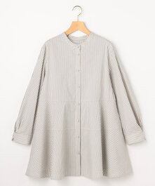 気になるお尻周りを隠せるチュニック丈のブラウスに、繊細なラメ感が上品なカーディガンを合わせて。