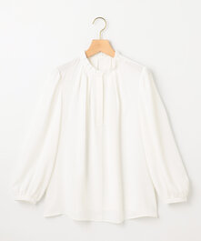 少し寒さを感じるときはブラウスの下にタートルをレイヤードしても◎