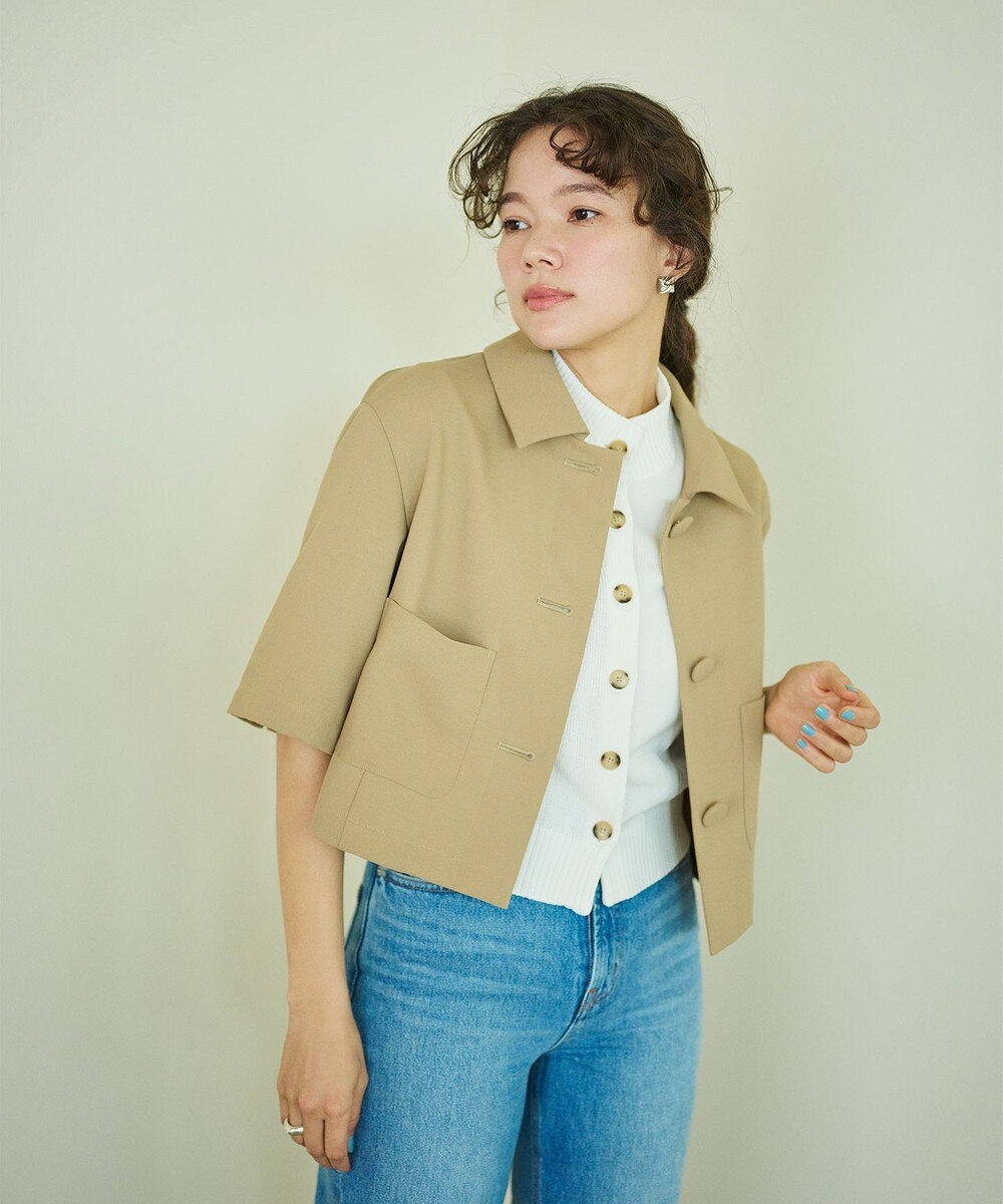 【シワになりにくい】〈花乃まりあさんコラボ〉クロップドシャツジャケット/#Newans