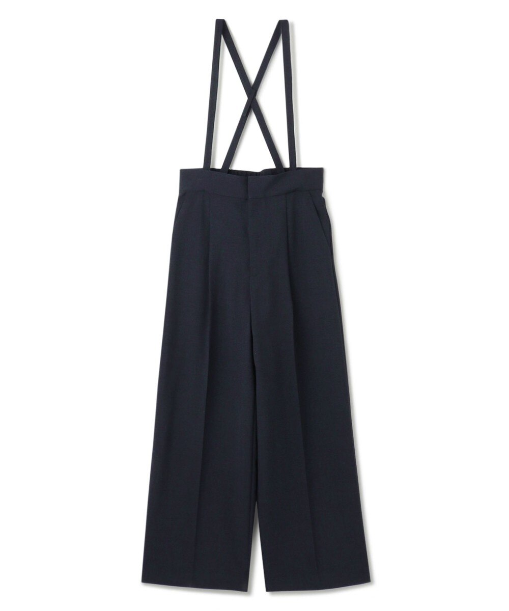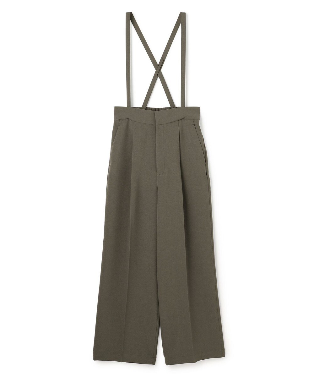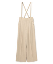 ハイウエストの脚長効果のあるワイドパンツ。サスペンダーの取り外しが可能な着回し抜群の1着。