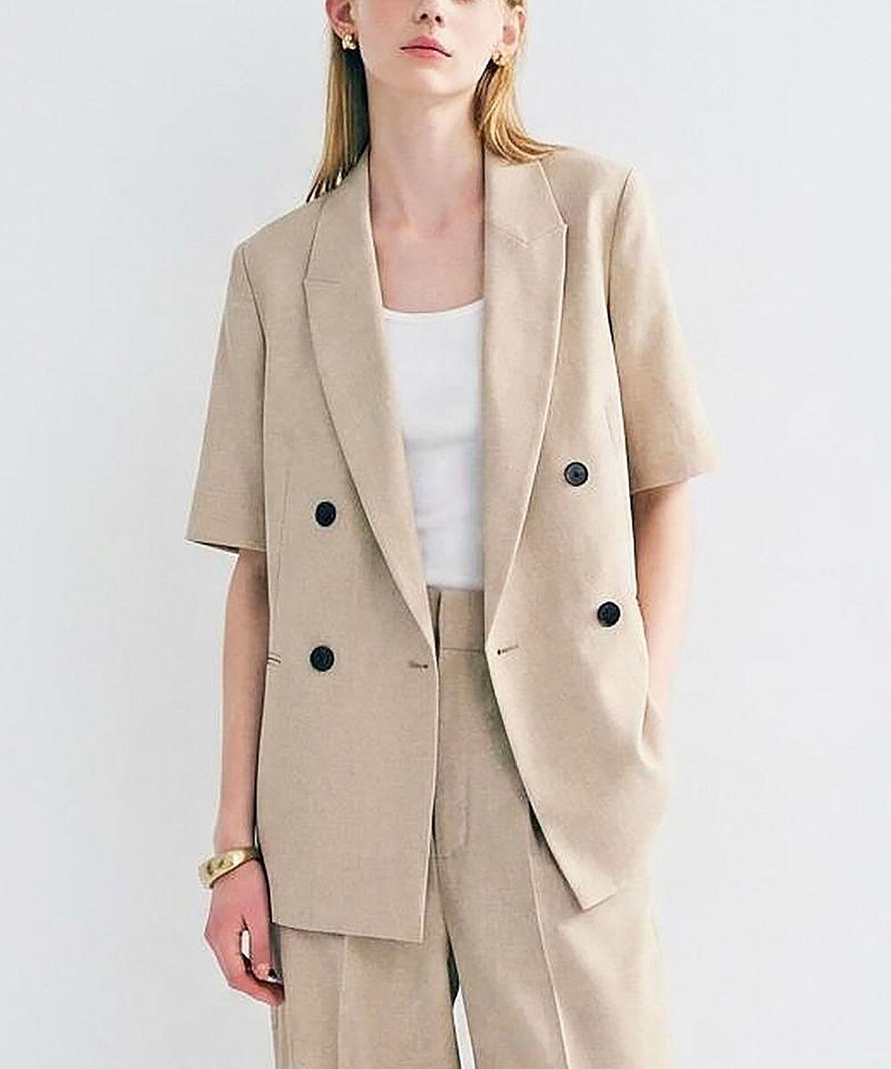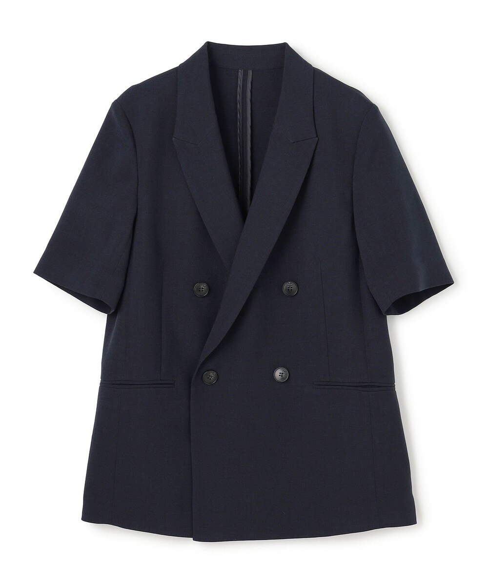 ハンサムでありつつ女性らしさも兼ね備えたハーフスリーブジャケット。夏のセットアップにもプライベートでも使える1着。