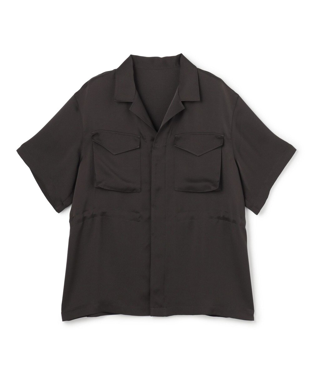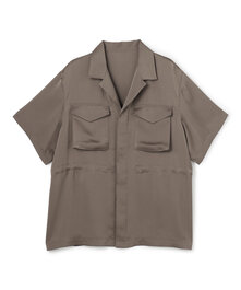 ミリタリージャケットもサテンを使用してスタイリッシュに。落ち感の良い素材だからこそウエストを絞ってメリハリをつけたい。