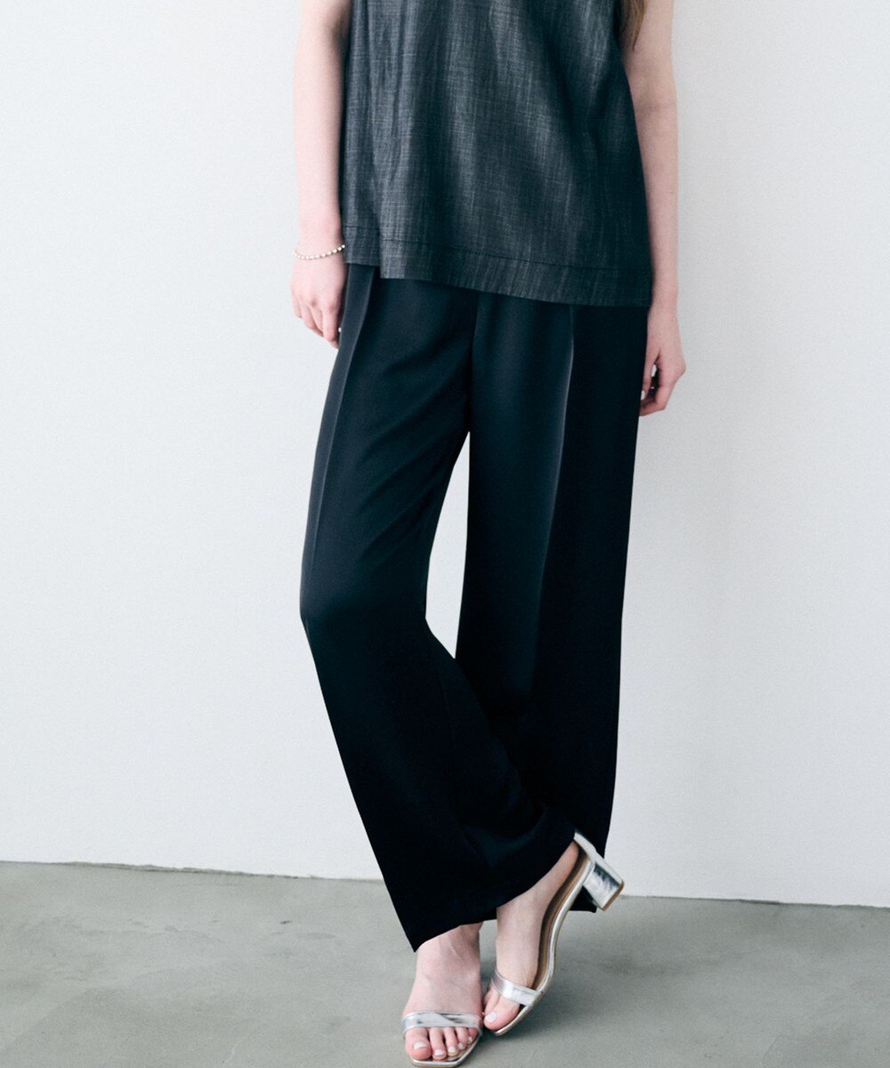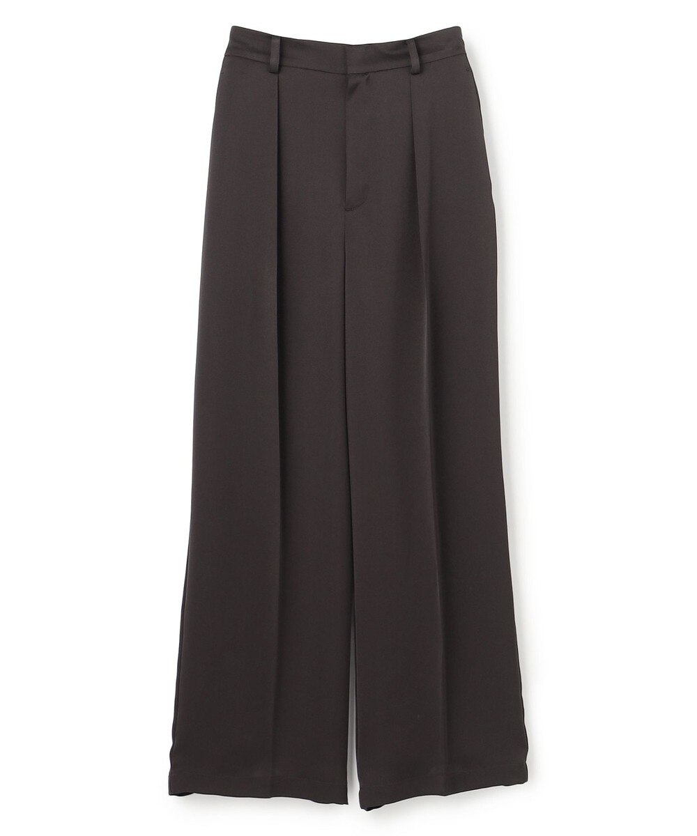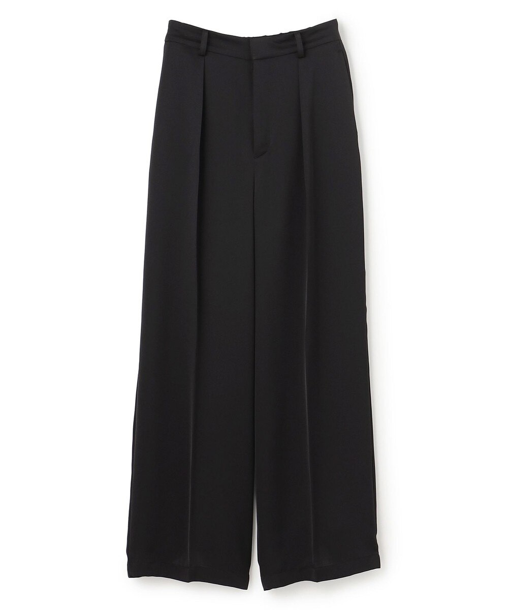 軽やかな素材のサテンワイドパンツ。ちょうど良い艶感がキレイ目もカジュアルも合う1着は持っておきたいアイテム。