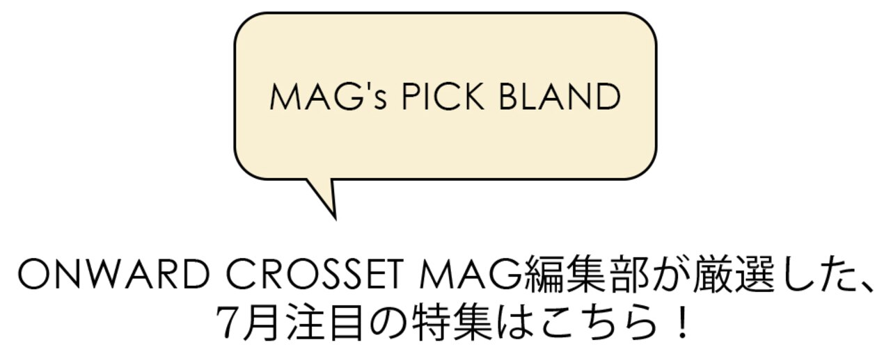 「ONWARD CROSSET」で取り扱うブランドから、ニュースを毎月ご紹介!オンラインストア情報やショップ情報など、気になるブランドをチェックしてみて。