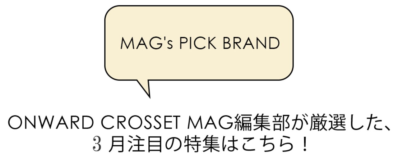 「ONWARD CROSSET」で取り扱うブランドから、ニュースを毎月ご紹介!オンラインストア情報やショップ情報など、気になるブランドをチェックしてみて。