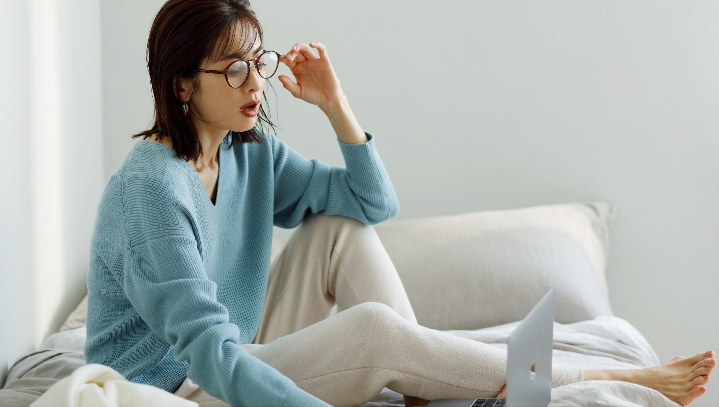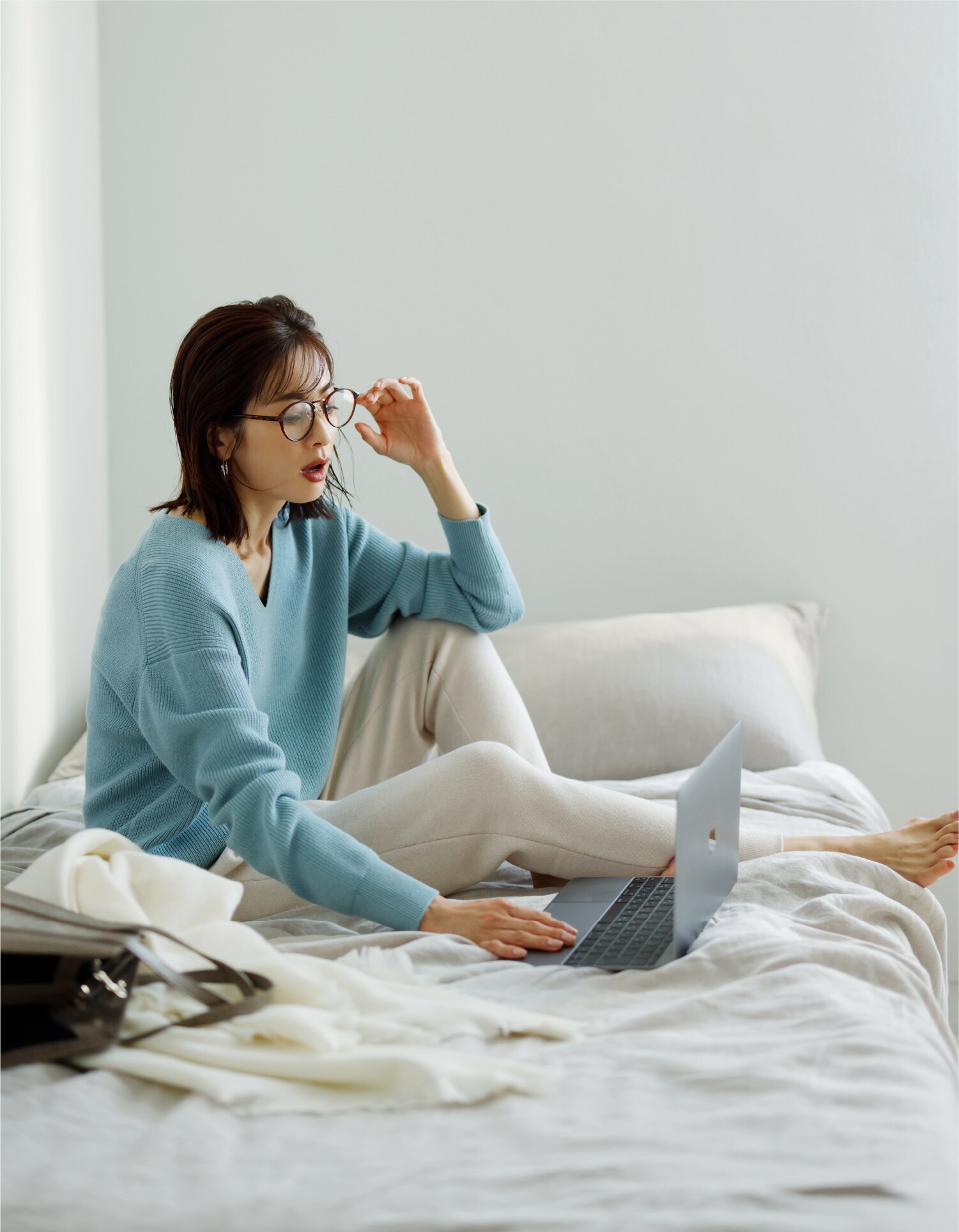 - 今日はおこもり仕事dayの日。リモートMTGはきれいめVネックで好印象、デスクワークは心地よいニットパンツがあればOK。ラクなのにきれいめキープで、仕事もはかどるベストな着こなし。