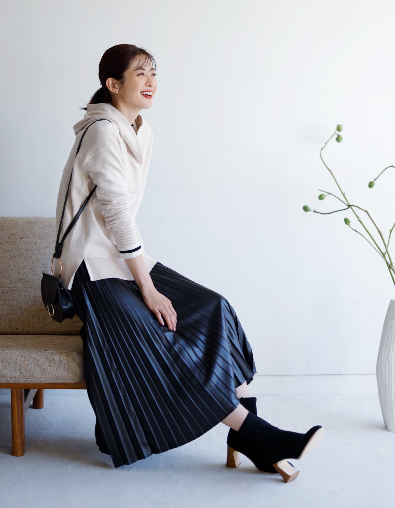 ツヤ感のあるスカート合わせなら