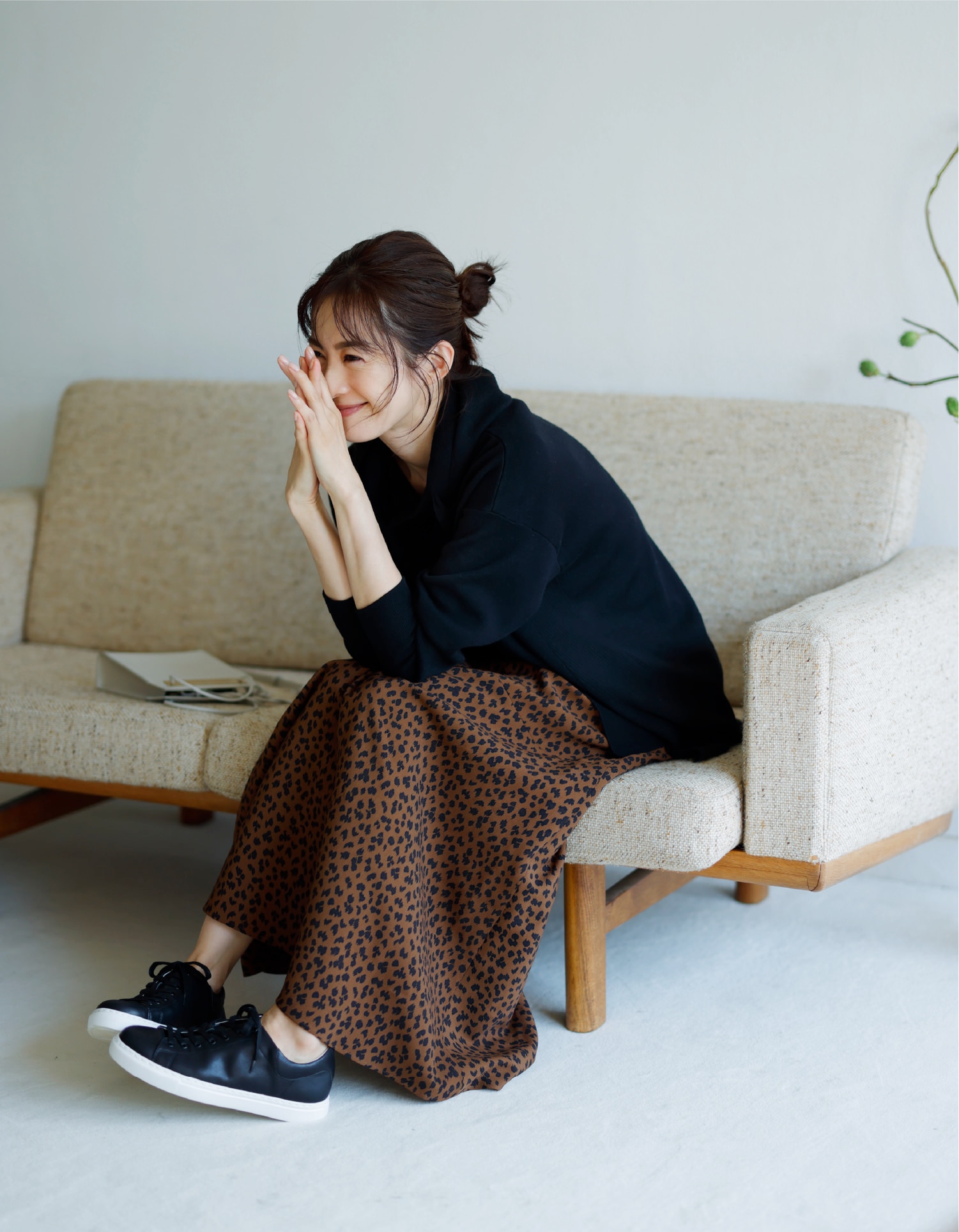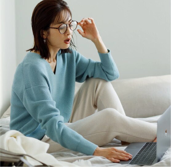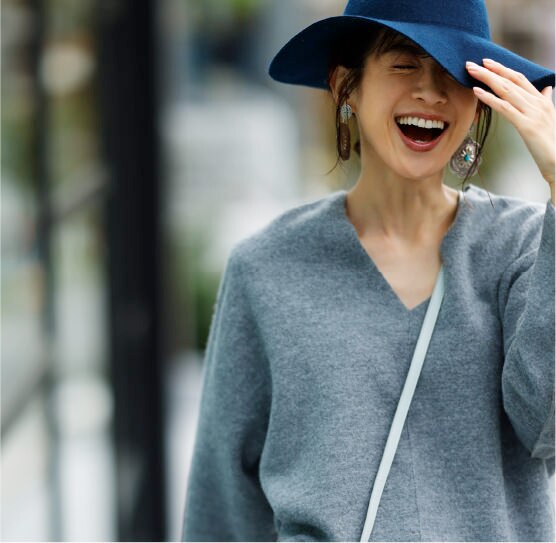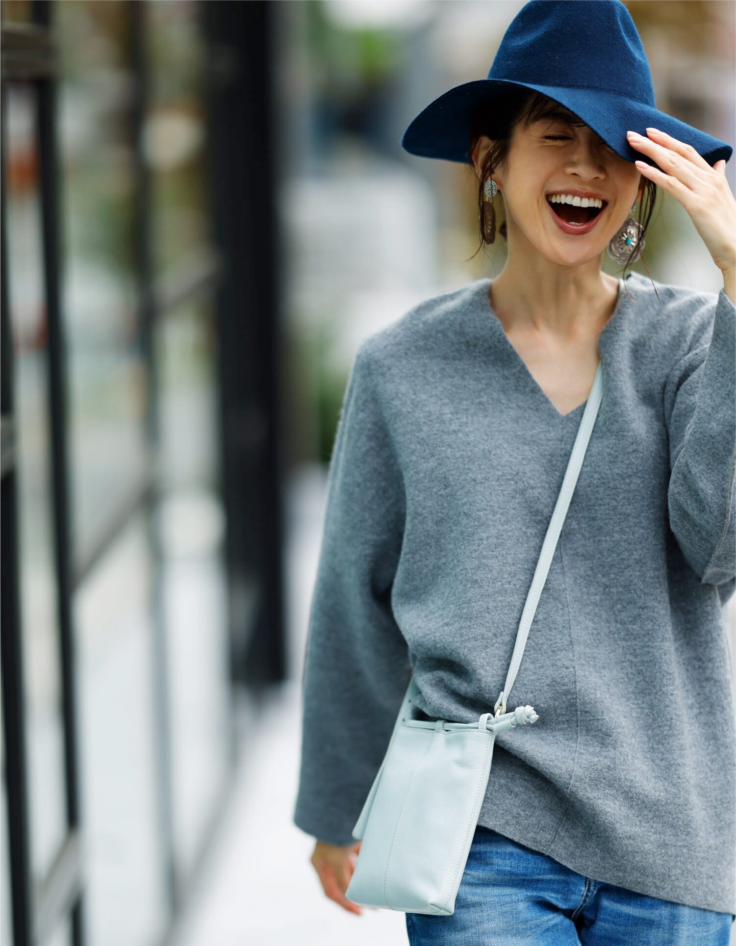 • オフの日もおしゃれしたいのは誰もが思うこと。だから着心地がよくてシンプル、どんなときにも使えるVニットを。合わせるボトムと小物で、今日は大人カジュアルに。