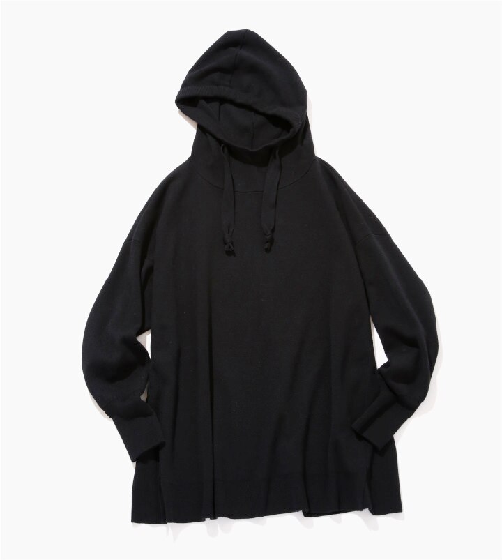 • 黒のニットパーカは大人っぽさをキープしつつ、リラックスした雰囲気にも見せてくれる優れもの。