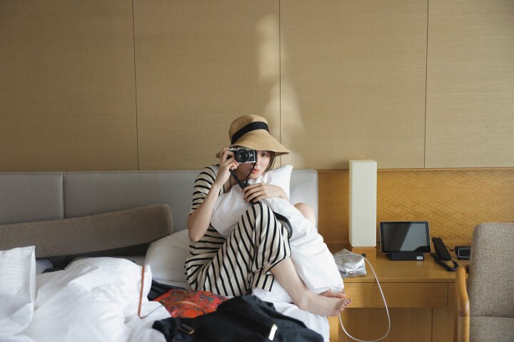 空が青い季節に映える「白ワンピ」は憧れのアイテム!アクティブに過ごすのには勇気がいるならホテルステイの日はいかが?もし汚してしまってもじゃぶじゃぶ洗濯機で洗えるなら意外とリラックスできるかも。背中のあきとボリューム感が可愛い一枚。