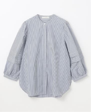 お馴染みのストライプシャツも、立体感のあるフォルムなら、こんなにも今っぽい。短丈&ふんわりボリュームのあるスリーブが存在感を発揮!1枚でさらりと、前ボタンを開けて羽織としても使える万能さ。