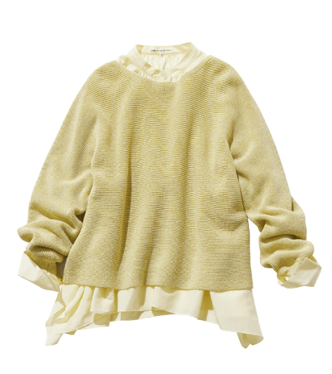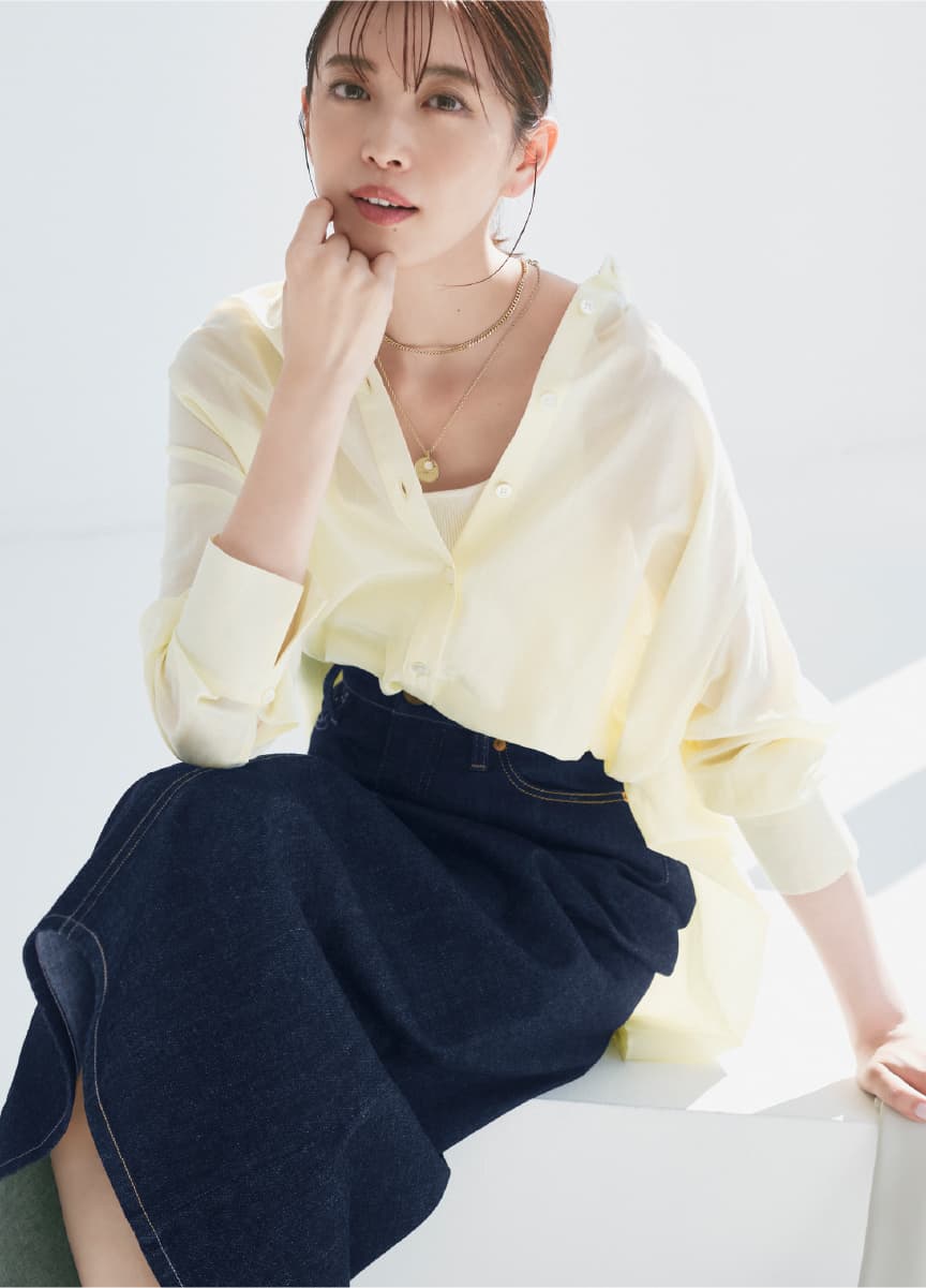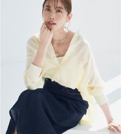 季節の変わり目には、目を引くレモンイエローでおしゃれのモチベをぐっと上げて。動きのあるヘムラインと、程よい透け感で1枚でも主役級の存在感!ニットのレイヤードでも活躍するから、春夏の通勤にも使えます。