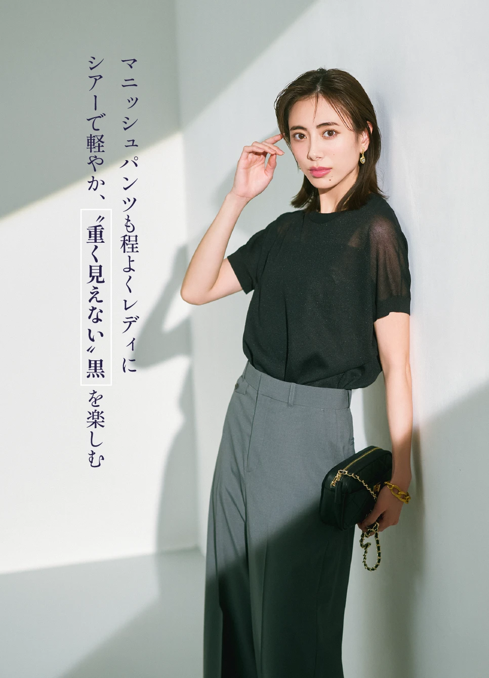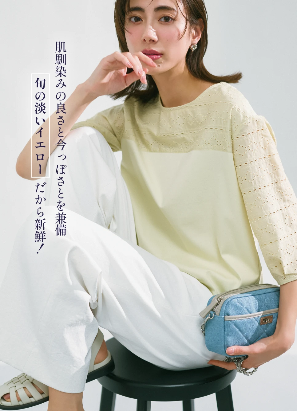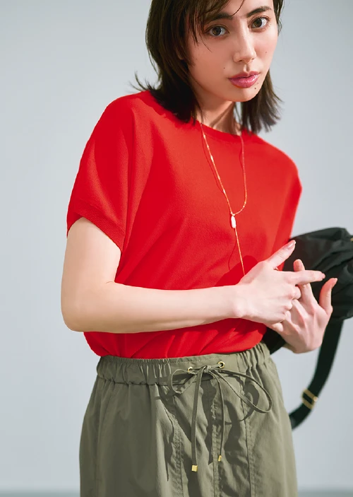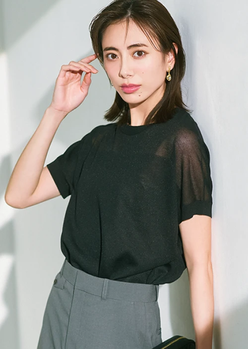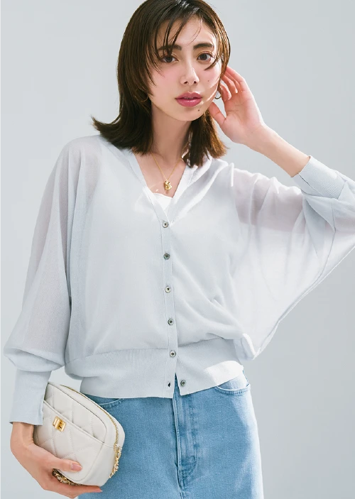 - 編地変化で透ける上品さ。肩部分のみ透けるデザインだから取り入れやすい。