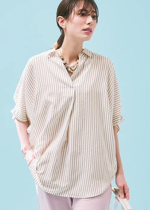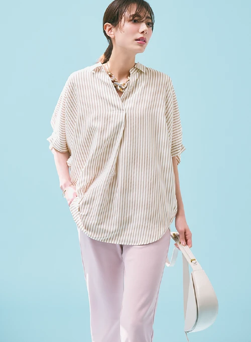 - さりげない透けが上品。表面感のある織り柄ストライプ。