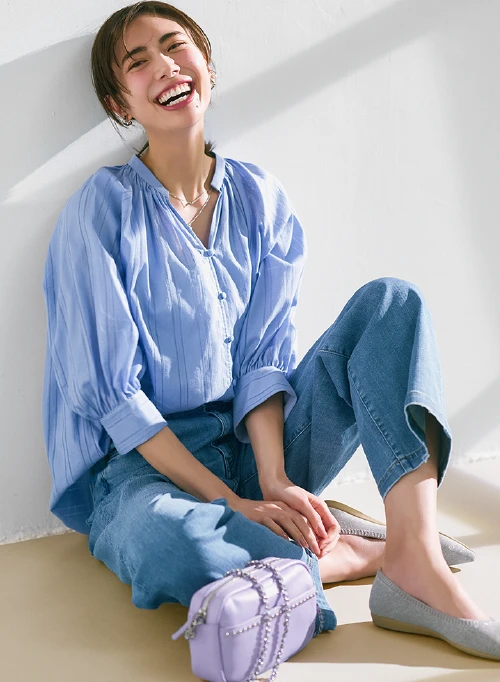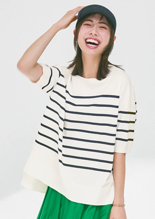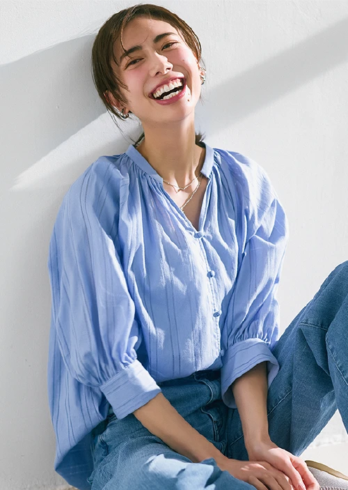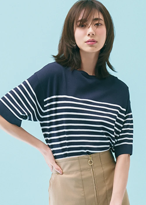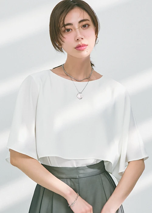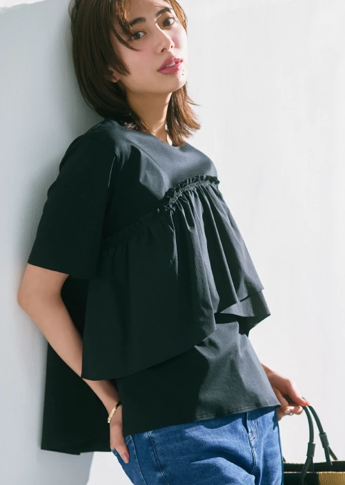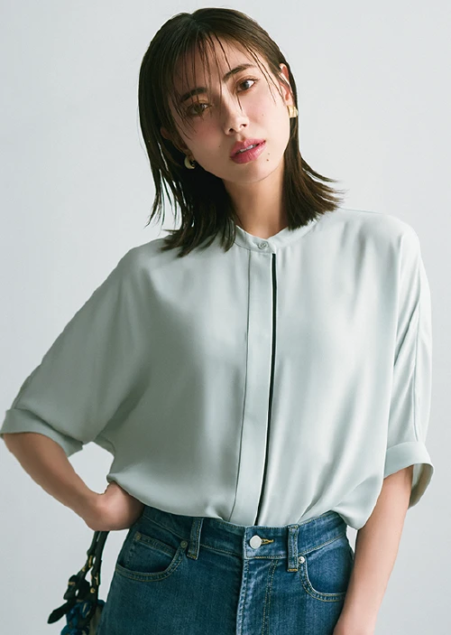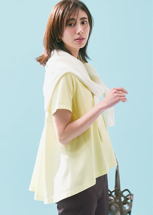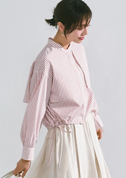 - 裾を出しても決まるトレンドのクロップド丈。前後差のある裾でお腹周りをカバー。