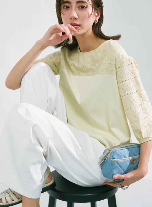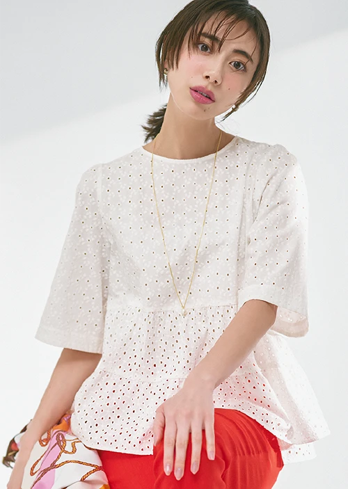 - 2種類の凹凸感のあるアイレット刺繍レース柄で華やか!
