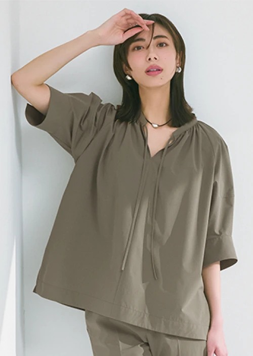 - ゆったり着られるシルエットは、裾の紐を絞ると丸みのあるフォルムに調整可能!