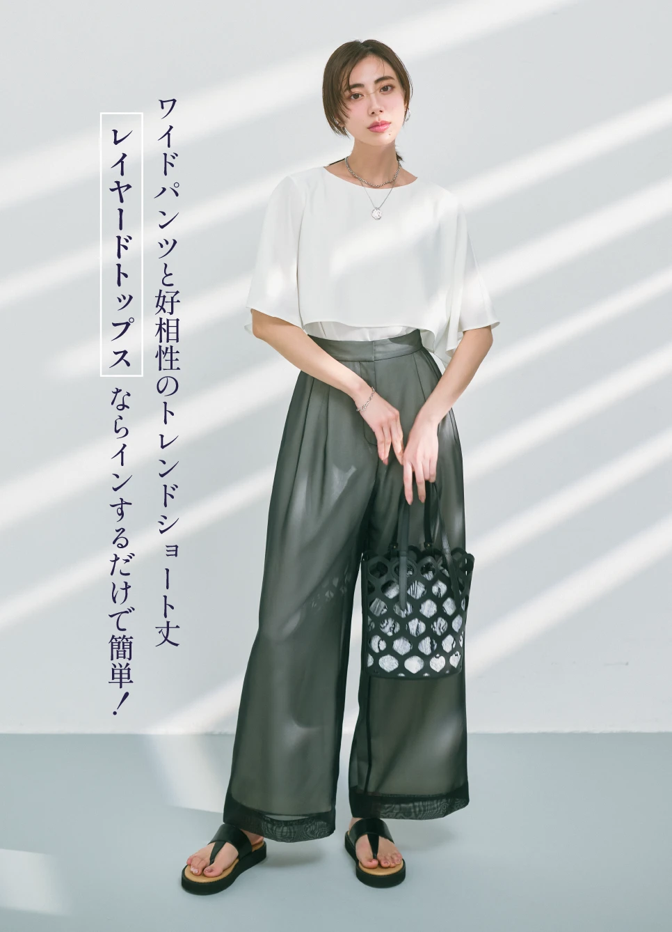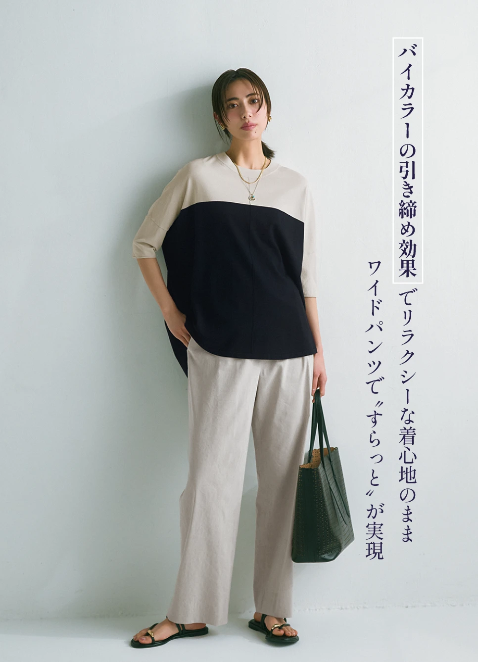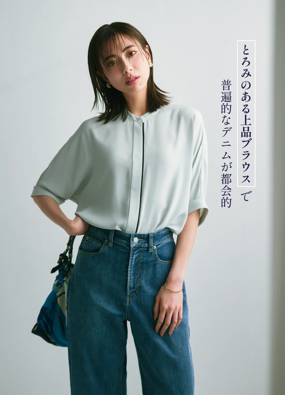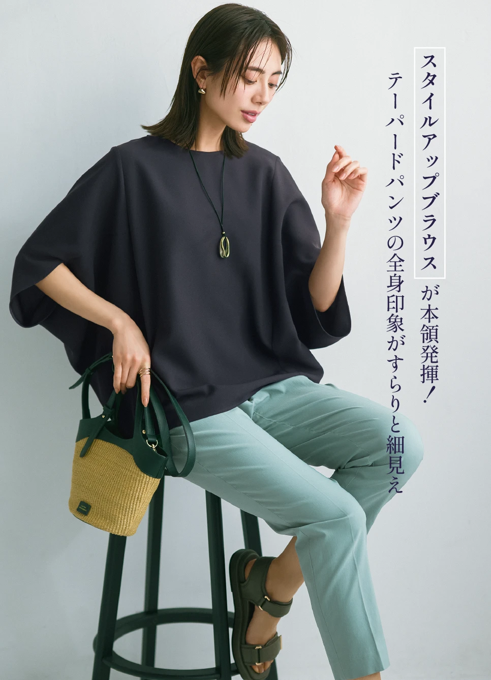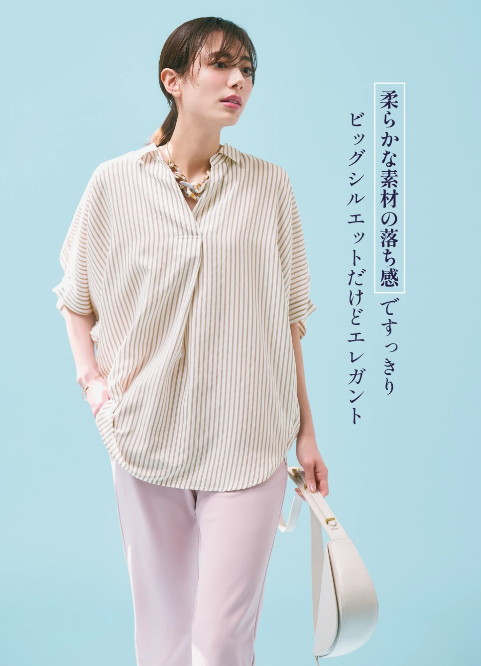 - 袖口のタックでシルエットがふんわり華やか!Vに開いた襟で顔周りすっきり。