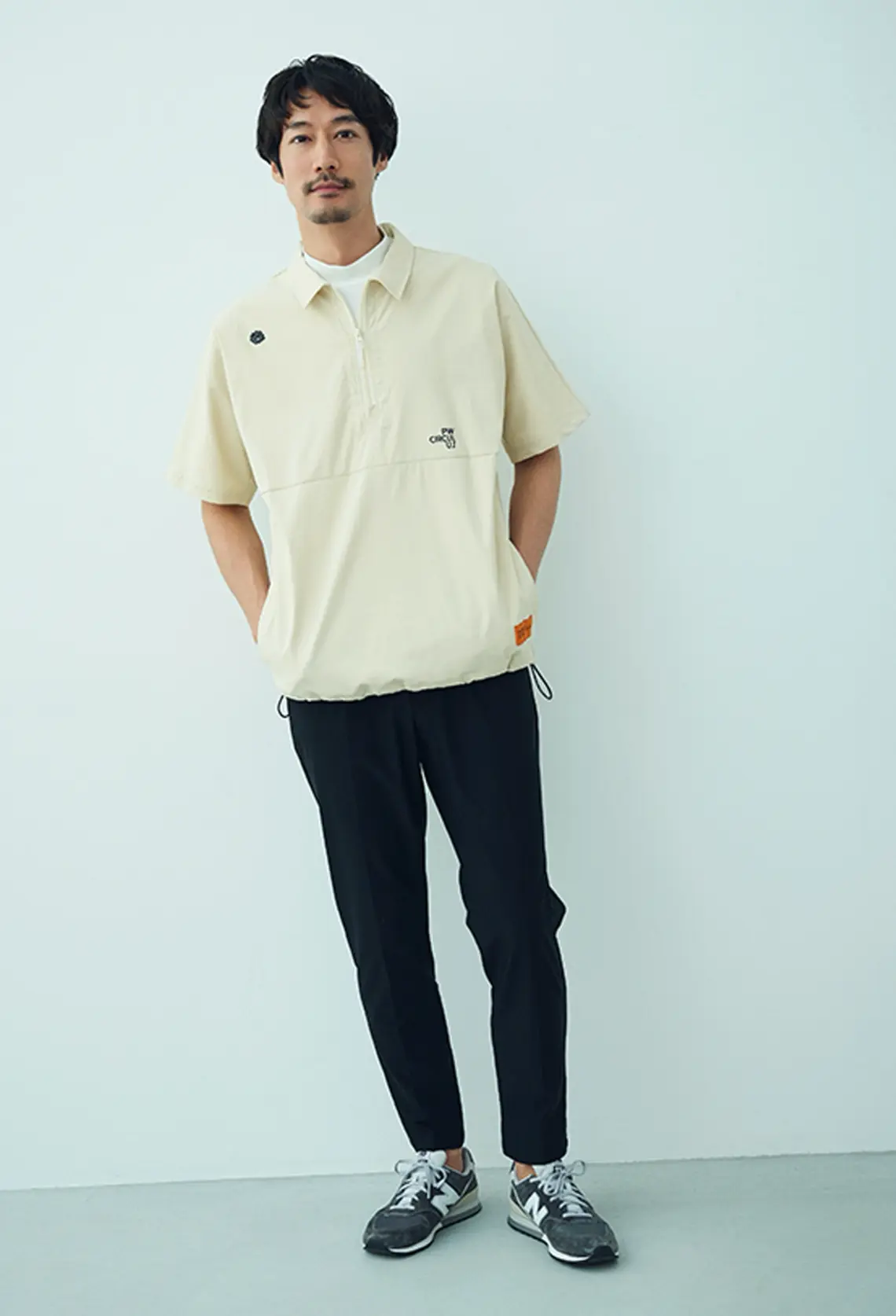 断然パンツ派なので、リラクシーなパンツにシフトして、いつもの感じに。ブルゾンはフロントを閉めてアレンジすれば、スタイルアップも叶う!新しい高機能素材を知ったので、今年の梅雨は乗り越えられるっ!