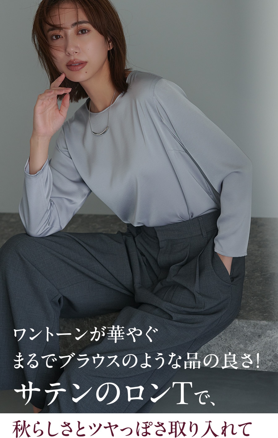 ベーシックだけど鮮度も高い!脱・無難なきれいめTシャツを発見!上品なツヤがある1枚だから、やりすぎないトレンド感と仕事にもぴったりなきちんと感が。