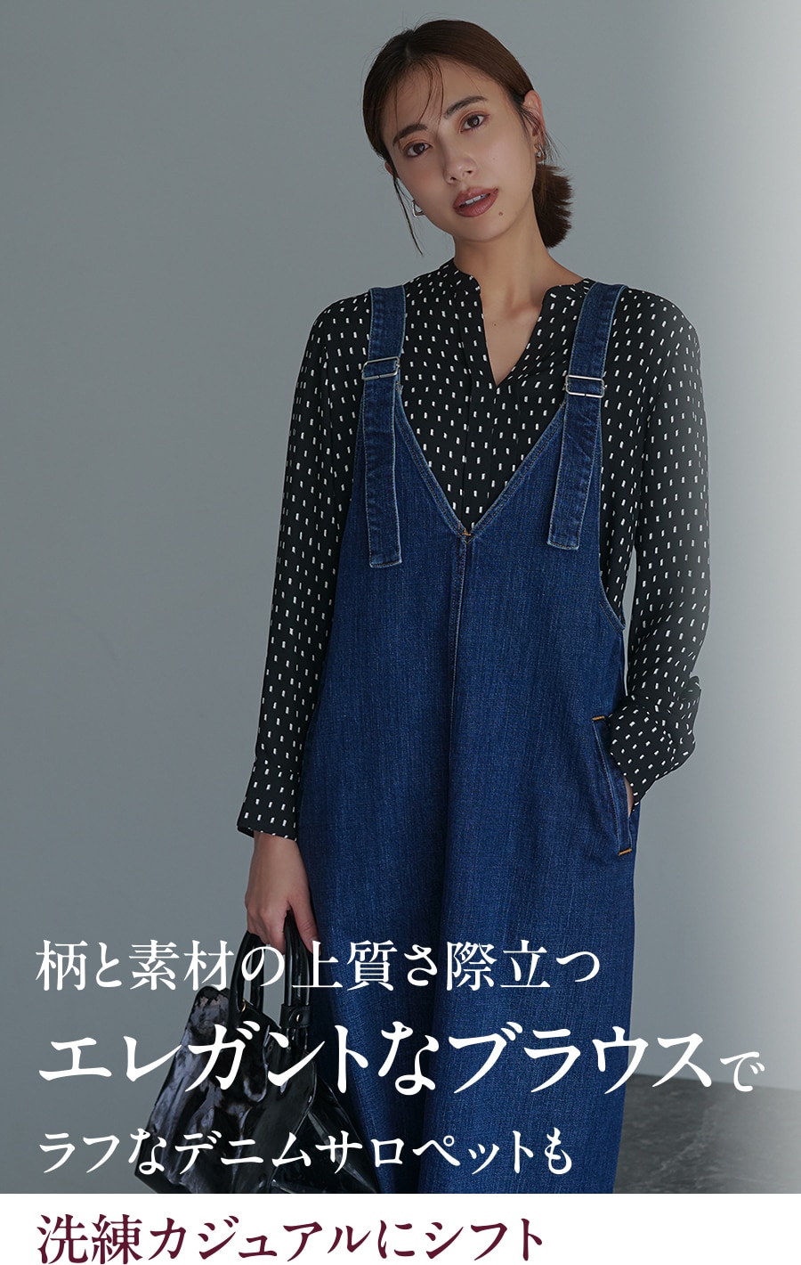 とろみのある落ち感が上品なブラウスは、着てみて驚く「さらりとした着心地」と「体型を拾わない着やせ力」。シワになりにくいイージーケアも嬉しいところ。