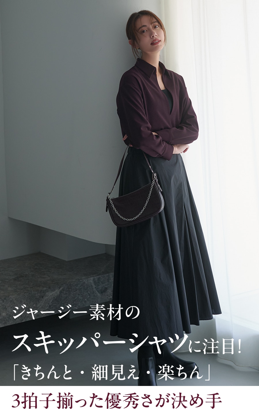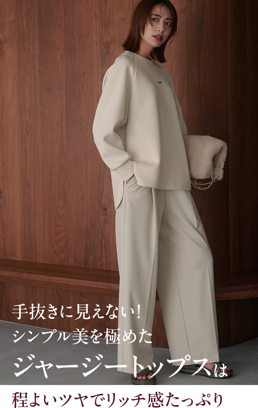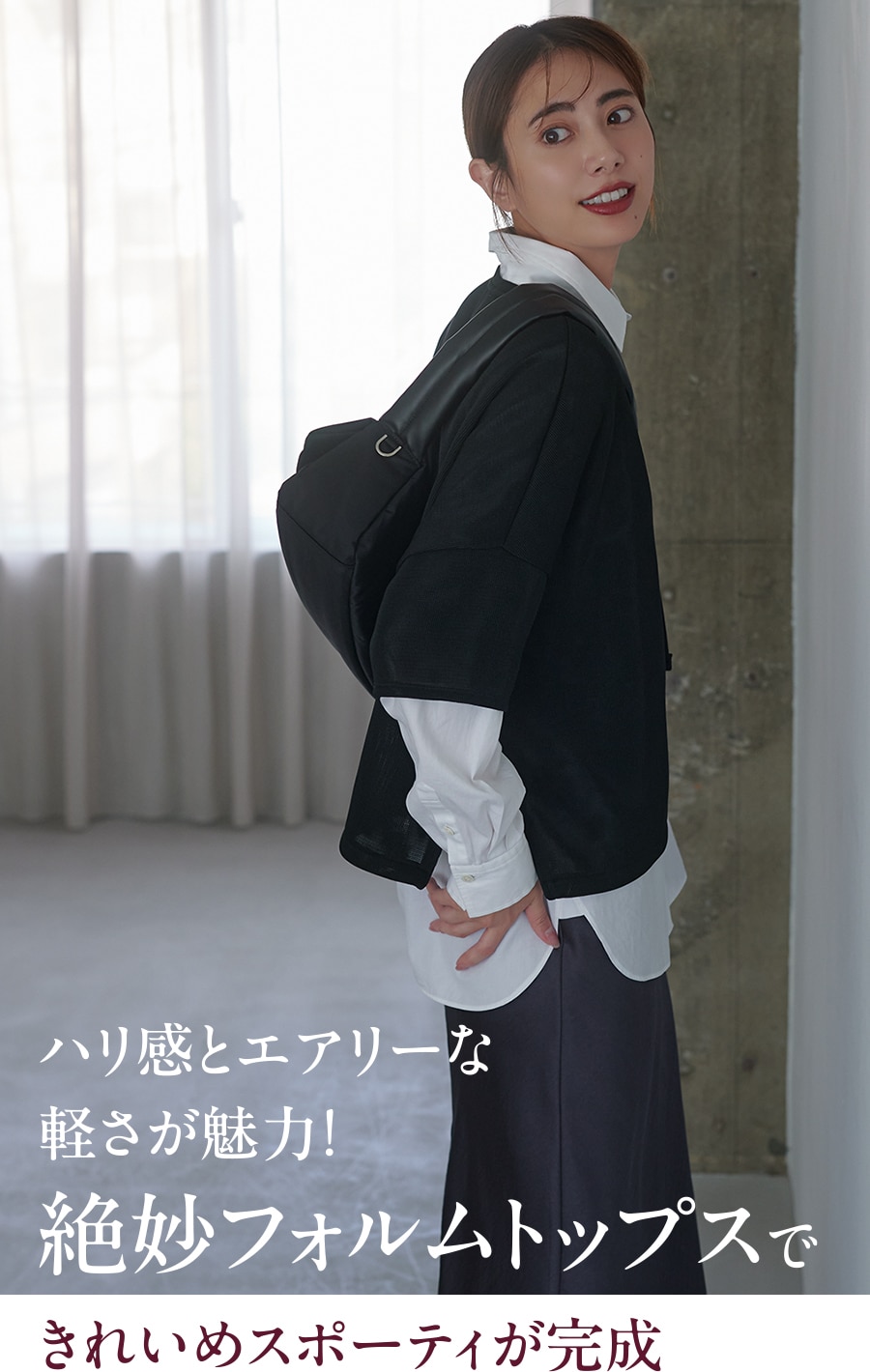 軽やかで体型を拾わない、きれい見えトップス。ワントーンコーデを盛り上げる美フォルムが秀逸!心地よく、扱いやすく、気負わない、旬を叶える理想の普段着。