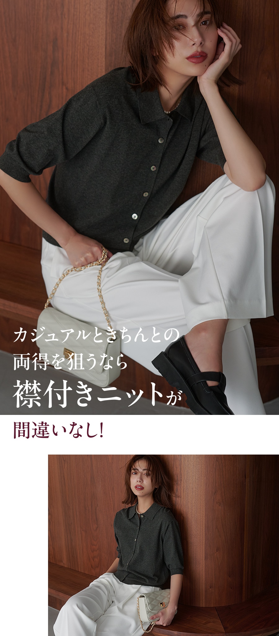 トラッドで襟付きだからきちんと見える上に、かっちりとかしこまりすぎないのがニットポロの良いところ。ノンウールだから、今すぐもこれからも重宝!