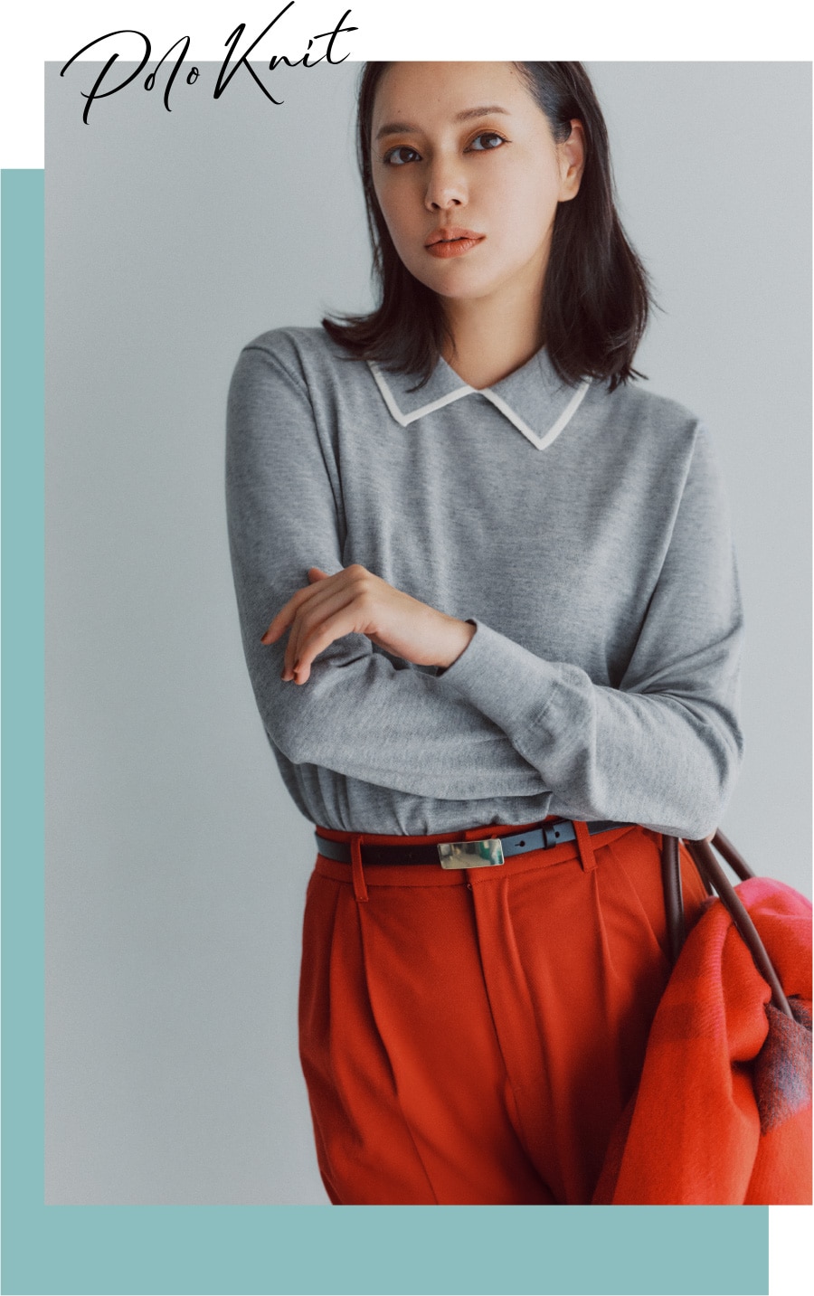 配色のトリミングが、品行方正なイメージをさらに高めるポロニット。夏から続く襟付きニットの人気は、秋まで継続の予感。取り入れるだけでシャレるから、余計なアクセは不要。上品カラーでまとめるのもいいけれど、キレイ色パンツで気分を上げるのも◎。