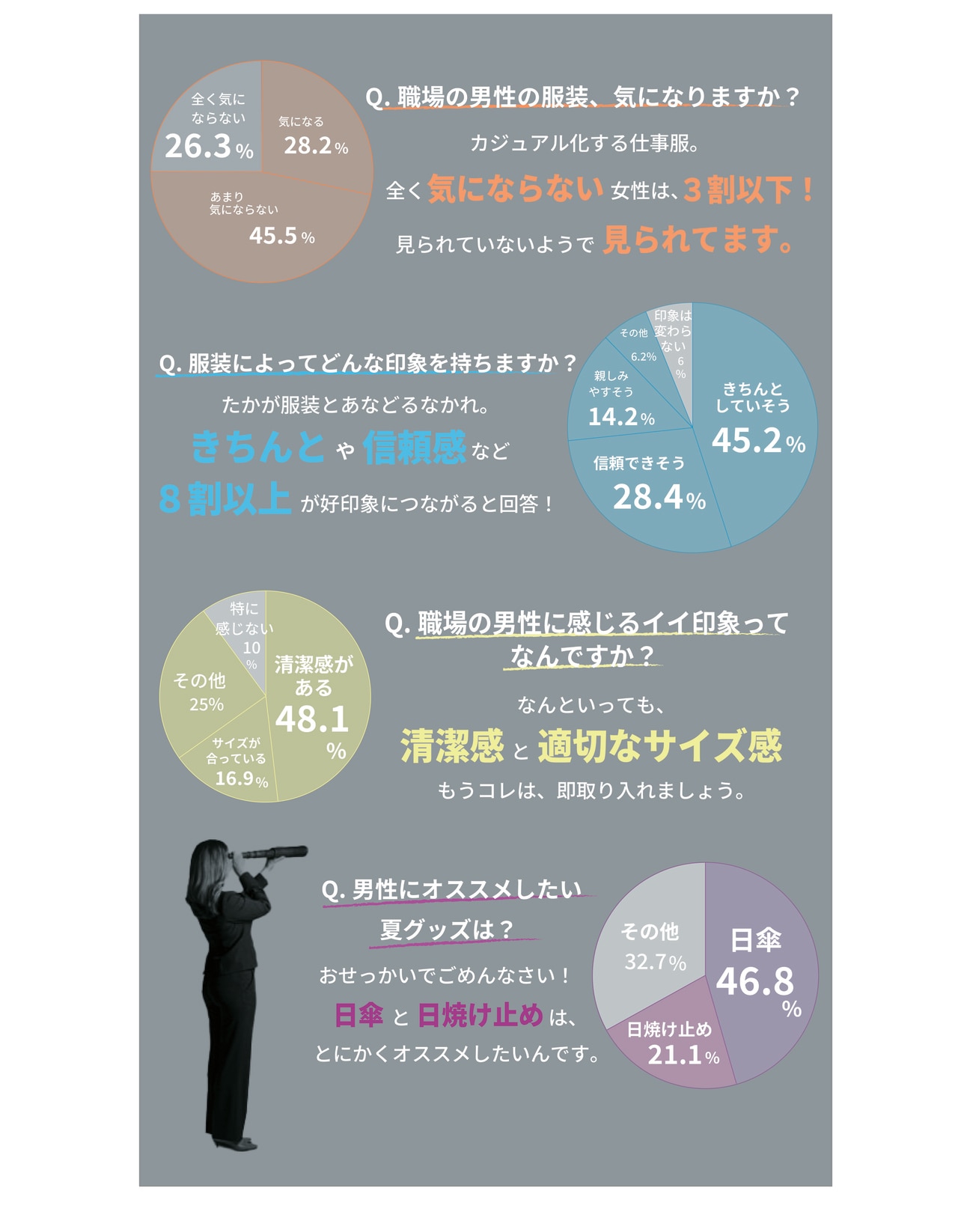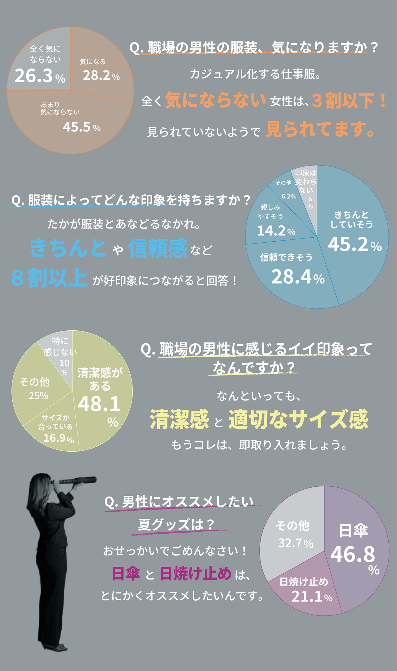 暑すぎる夏、仕事服に堅苦しさはもういらない!加速するカジュアル化についていけていますか?アンケート結果を元に、ちょっとしたコツで手に入れましょう‟快適さと好印象”。